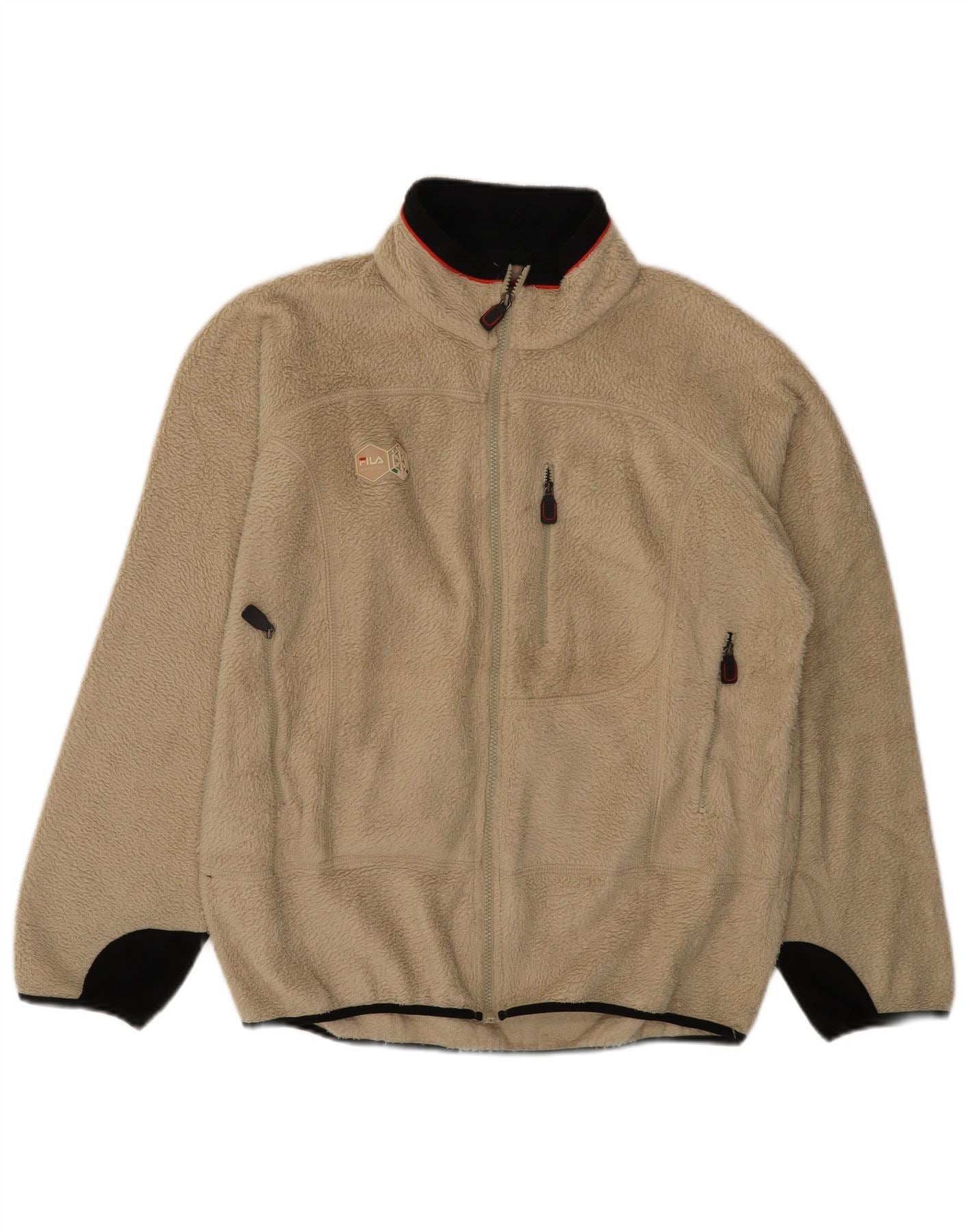 Męska kurtka polarowa Fila UK 40, duża, beżowa, z blokami kolorów, poliestrowa, sportowa
