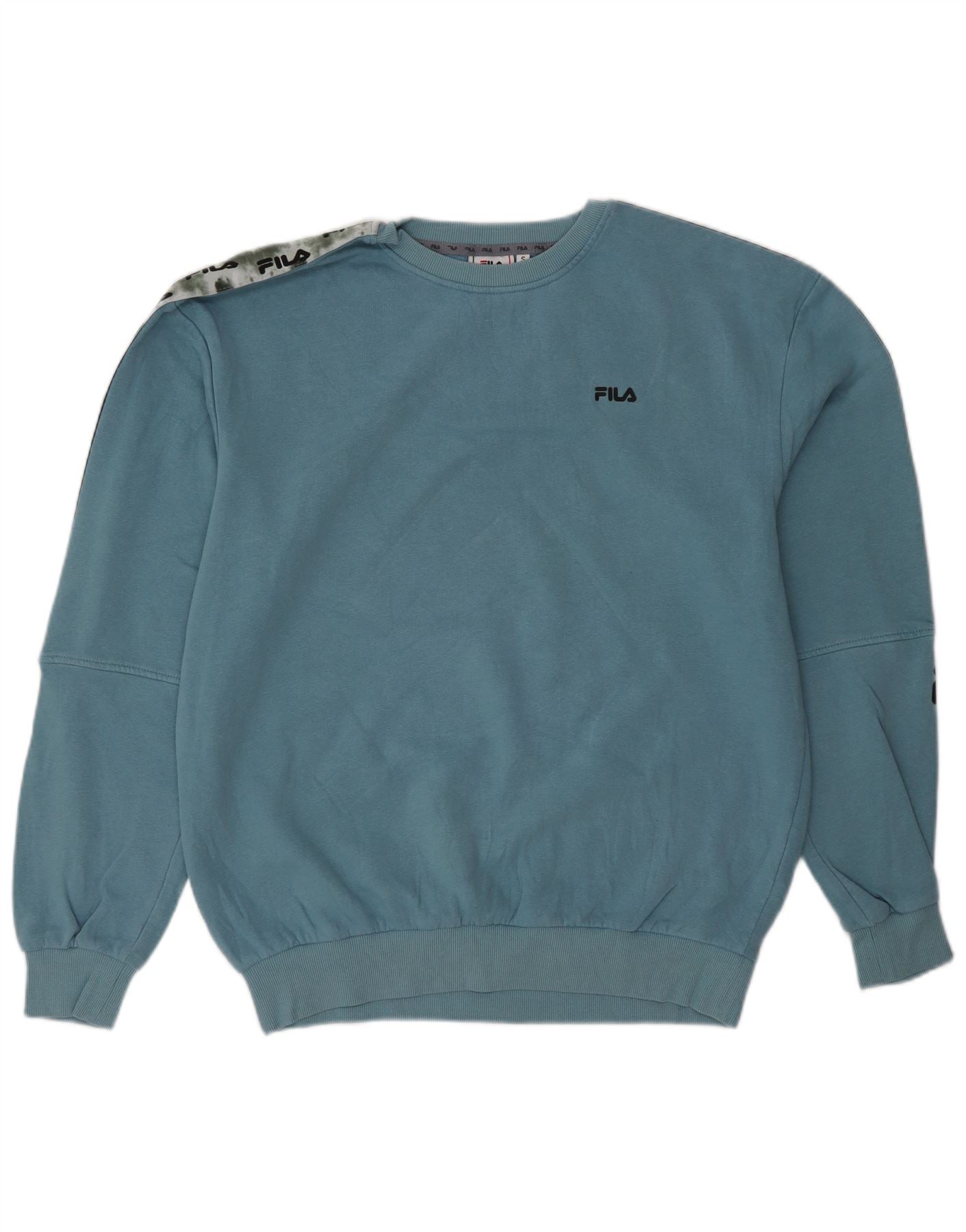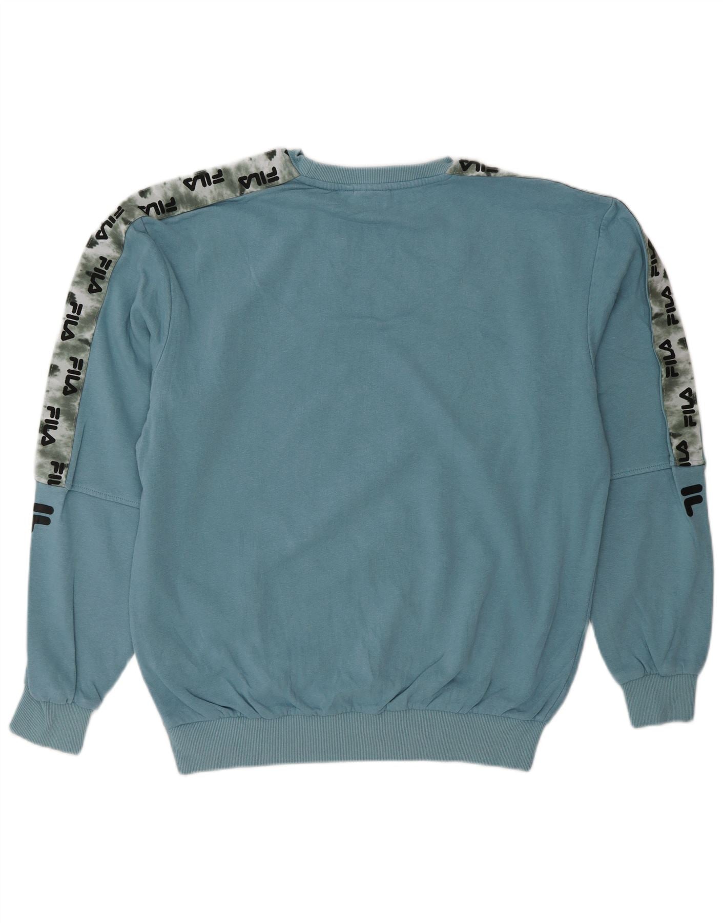 FILA Męska bluza z grafiką, mała, niebieska, bawełniana z blokami kolorów