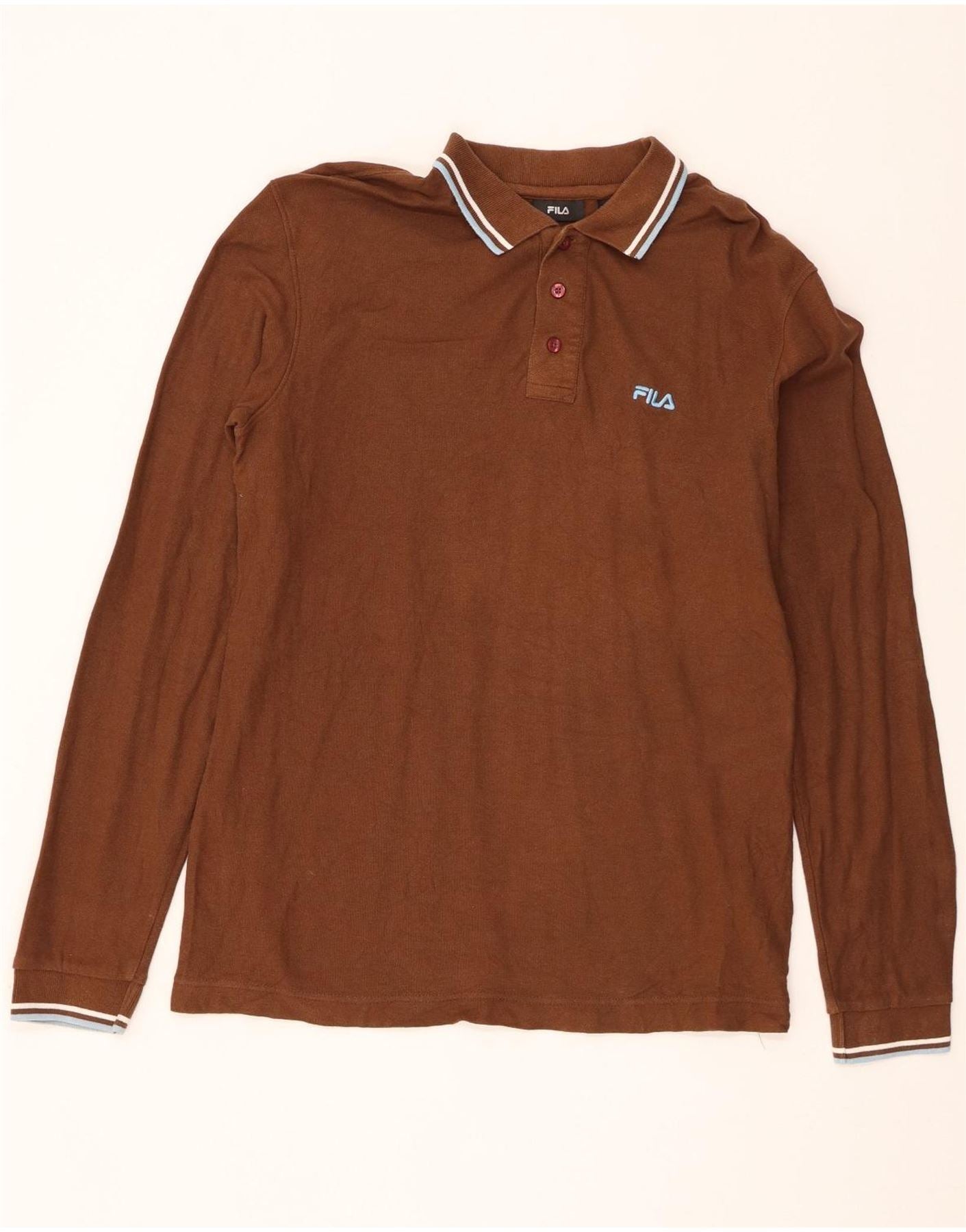 Męska koszulka polo Fila z długim rękawem, średnio brązowa, bawełniana
