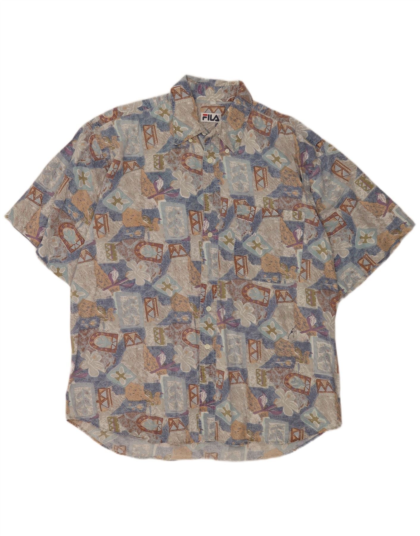 FILA Męska koszula z krótkim rękawem 2XL, wielokolorowa, bawełniana w kwiaty