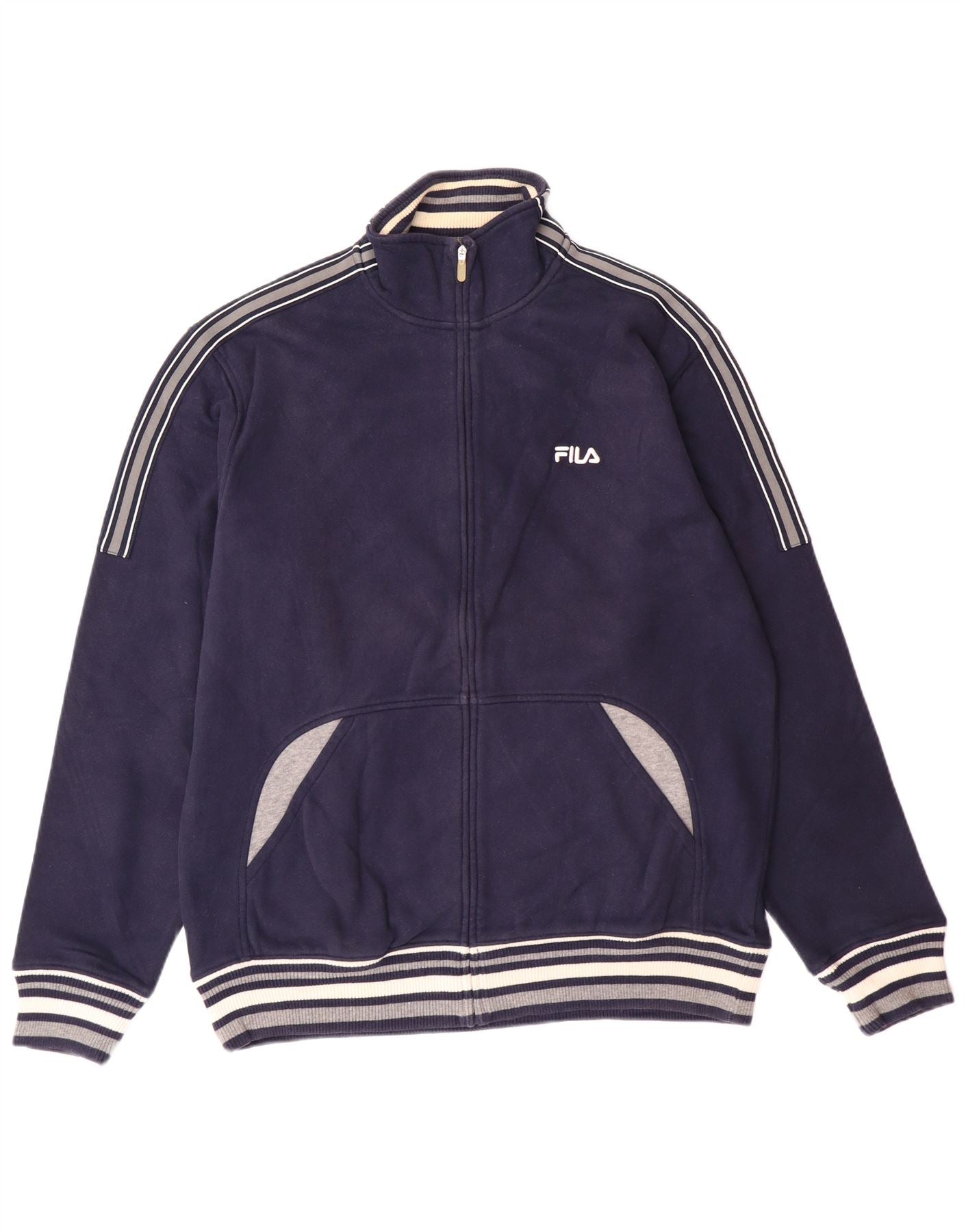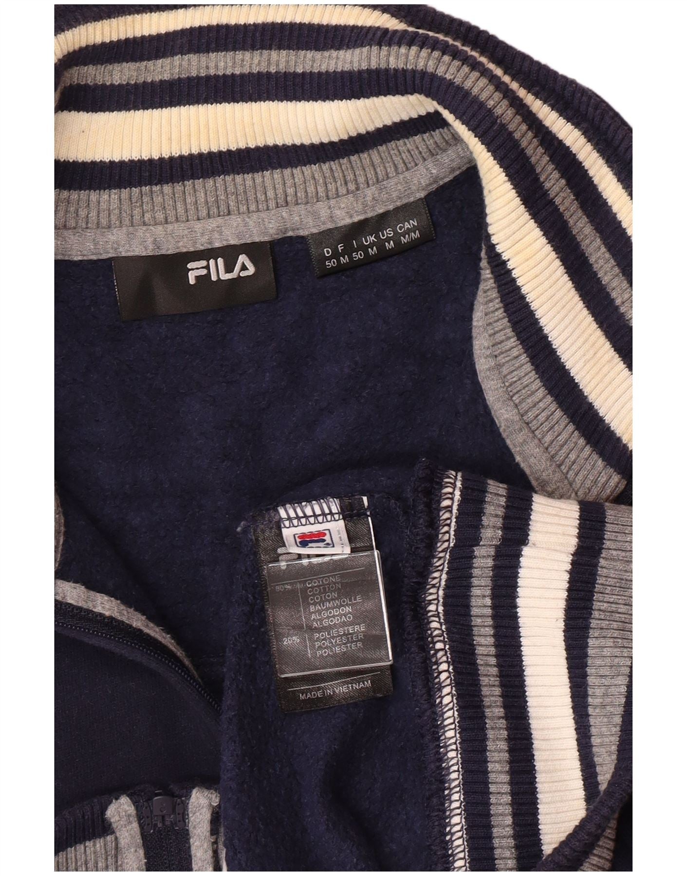 Męska kurtka dresowa FILA, średnia, granatowa, bawełniana w bloki kolorów