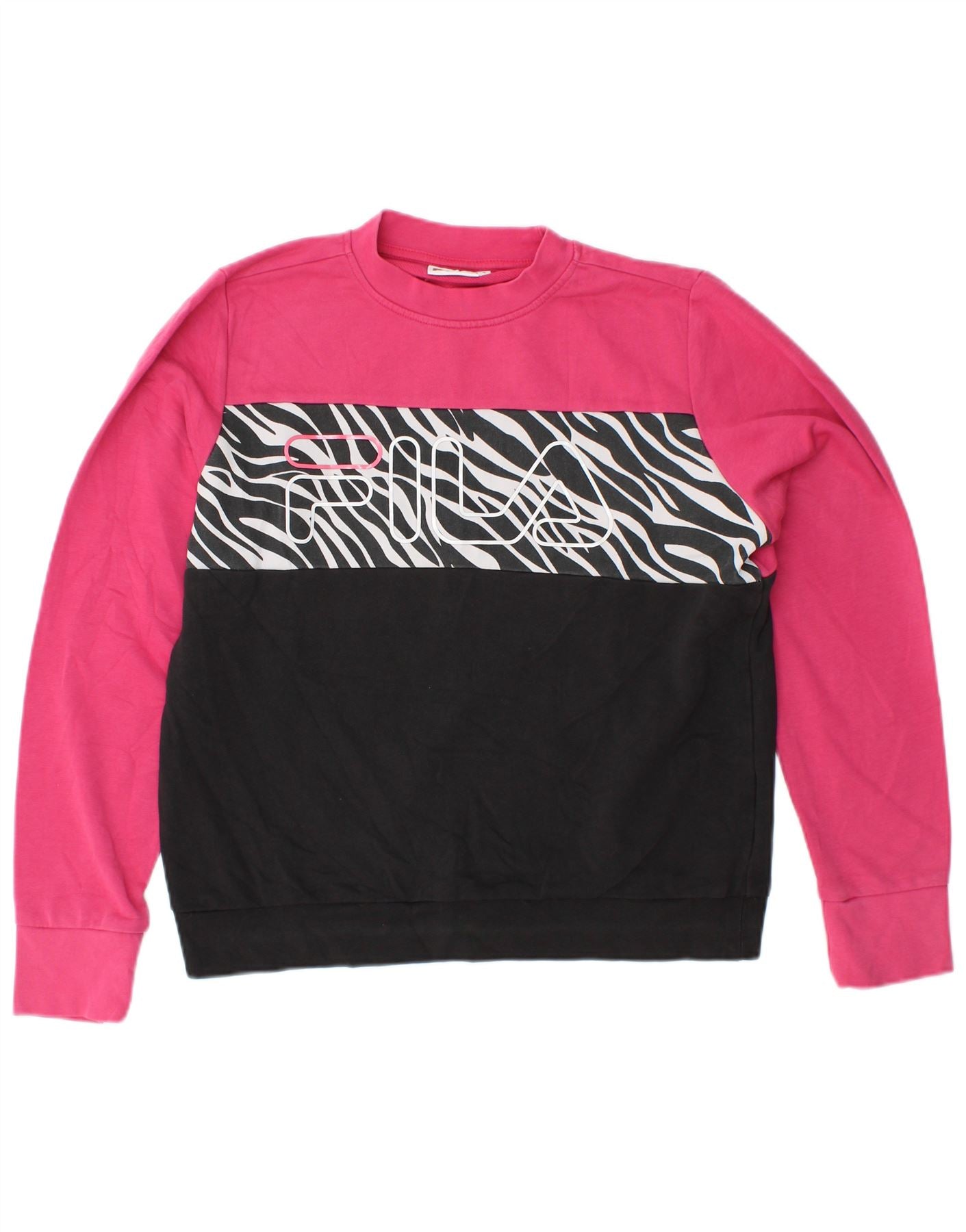Damski sweter oversize FILA UK 10, mały, różowy, z blokami kolorów