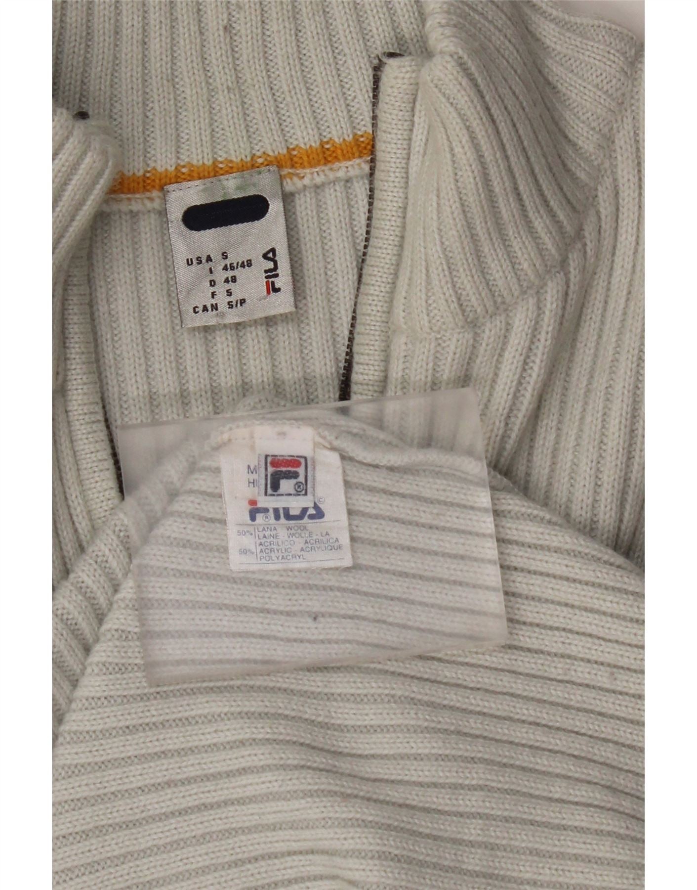 FILA Damski sweter z zamkiem błyskawicznym UK 10, wełniany w małe szare paski
