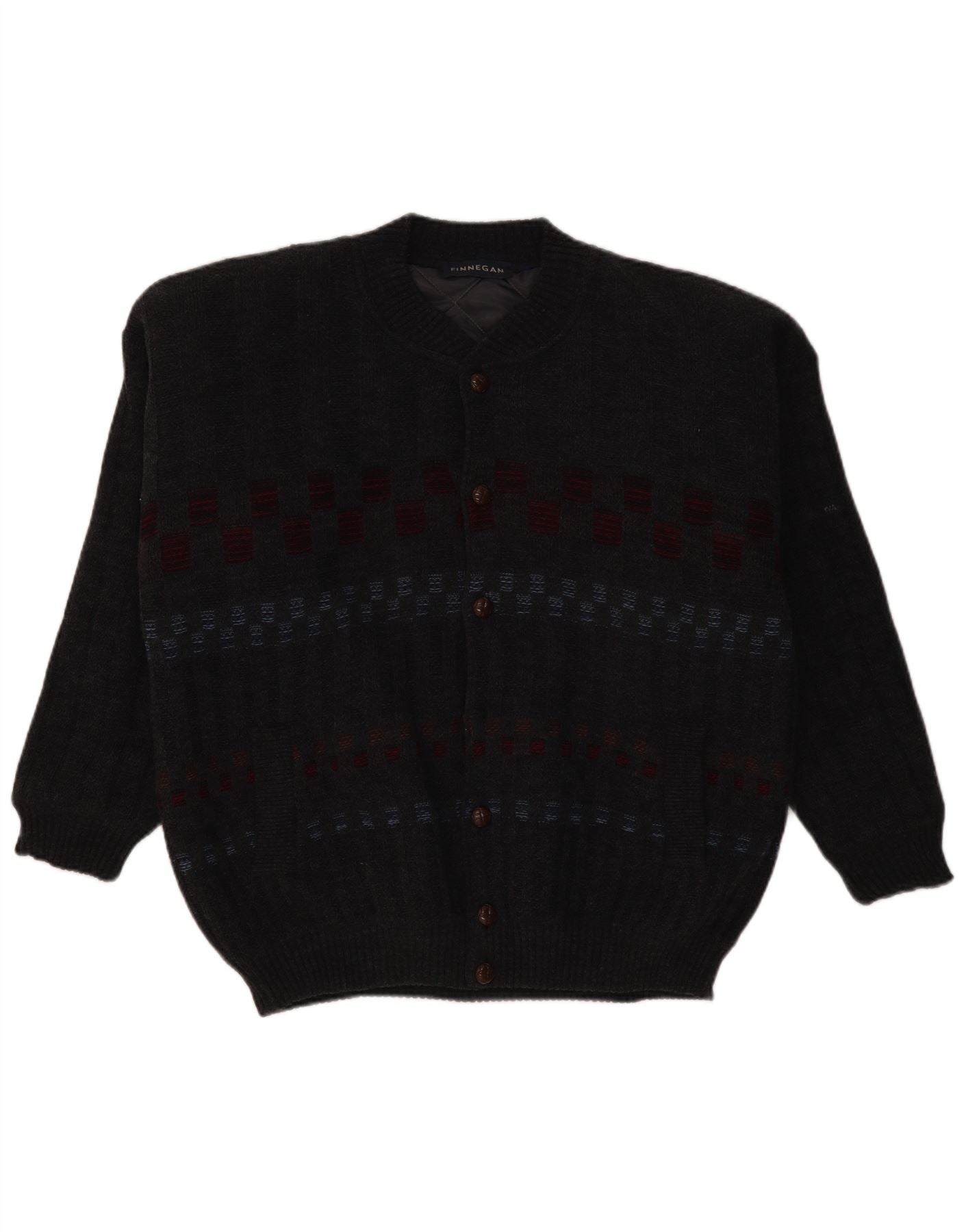 FINNEGAN Męski sweter rozpinany, duży, szary, geometryczny akryl