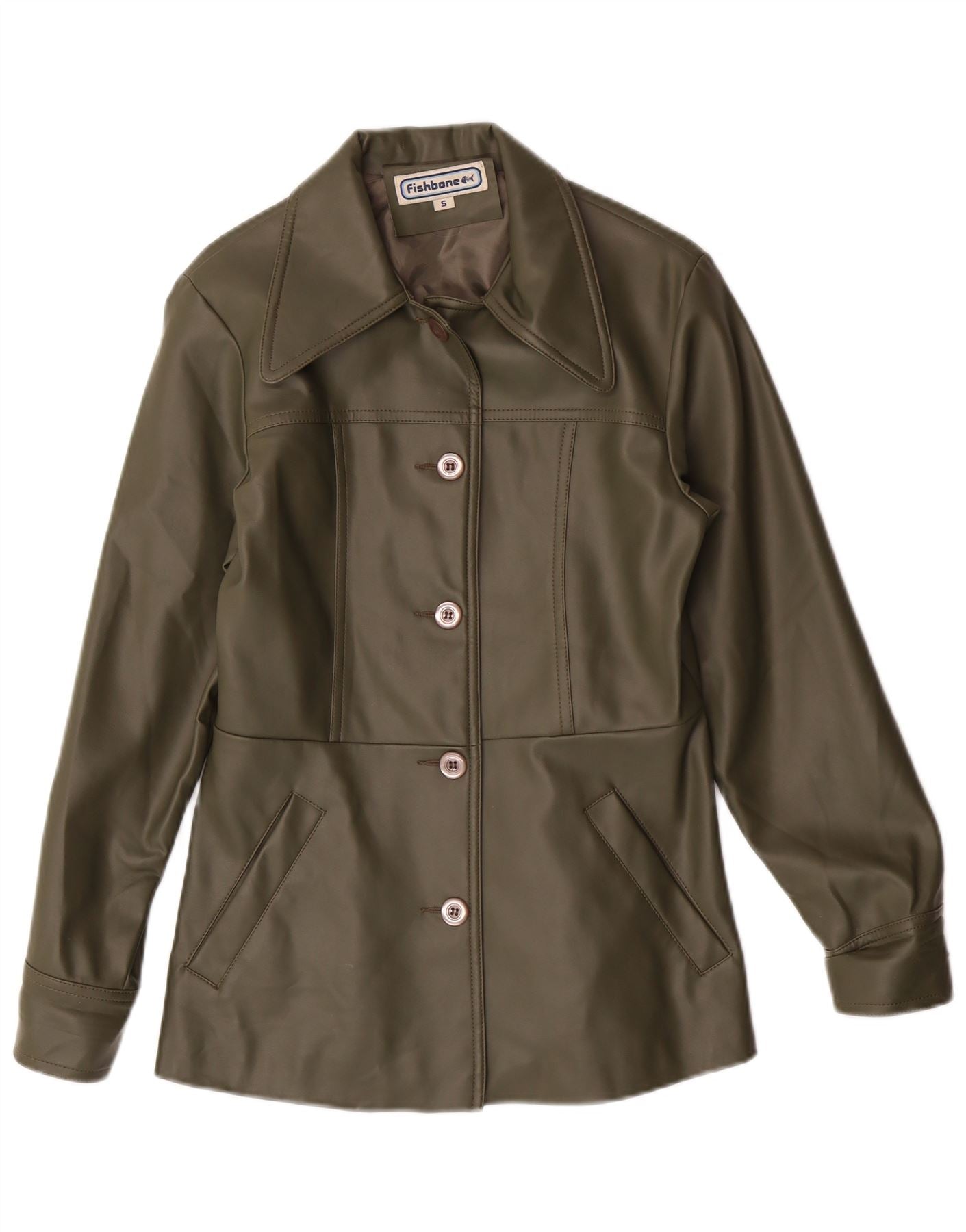 Damska kurtka ze sztucznej skóry FISHBONE UK 10, mała, zielona z poliuretanu