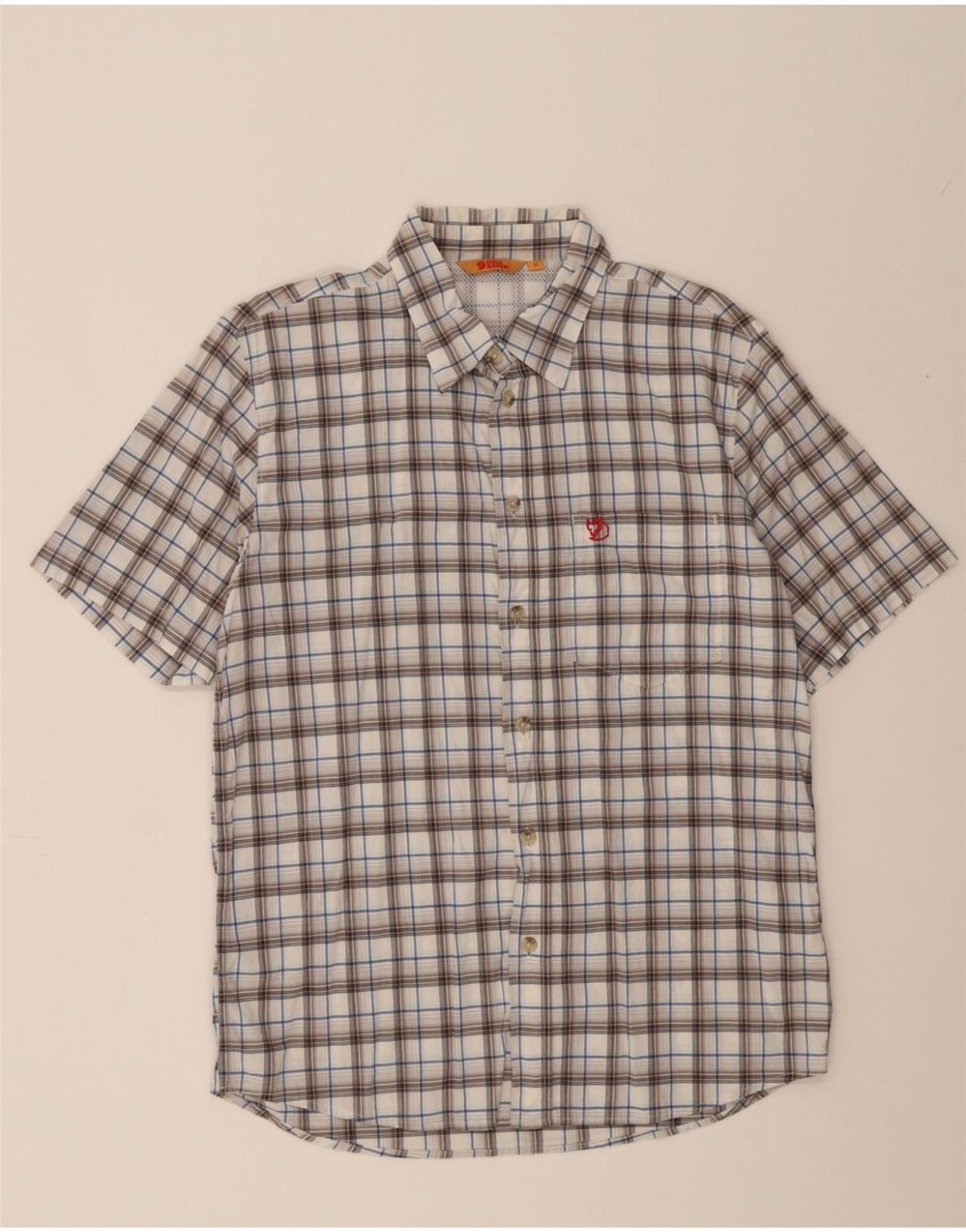 FJALL RAVEN Mens Short Sleeve Shirt Medium White Check Polyester
