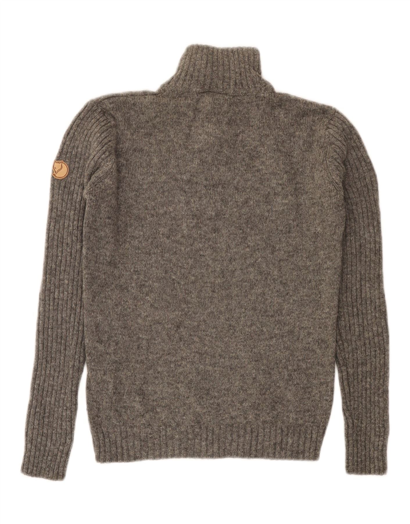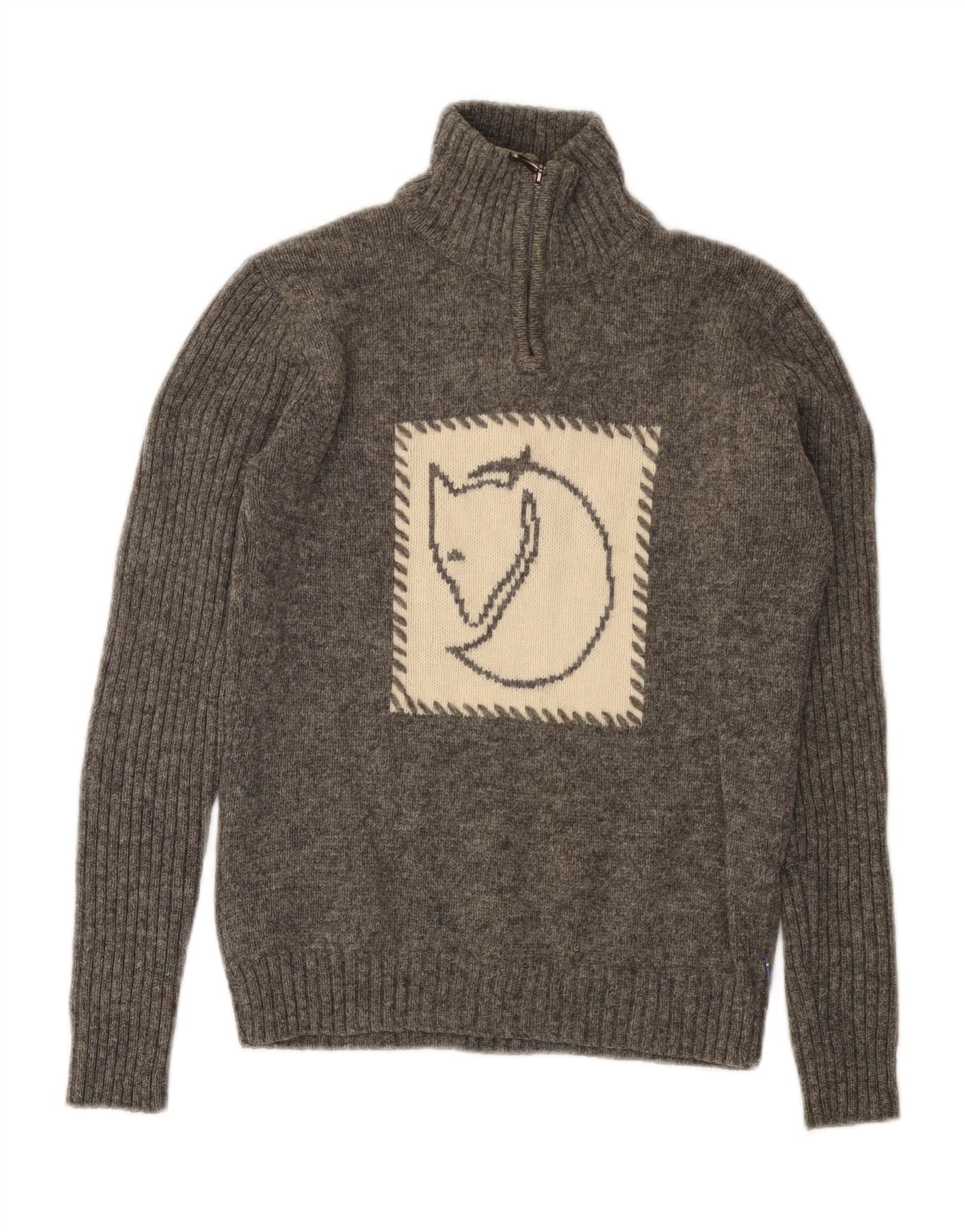 FJALL RAVEN Womens Graphic Zip Neck Jumper Sweater UK 10 Small Grey