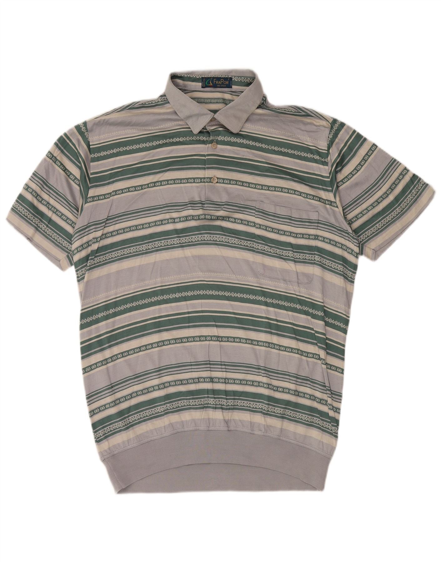 Męska koszulka polo FraPor, duża, szara, bawełniana w paski