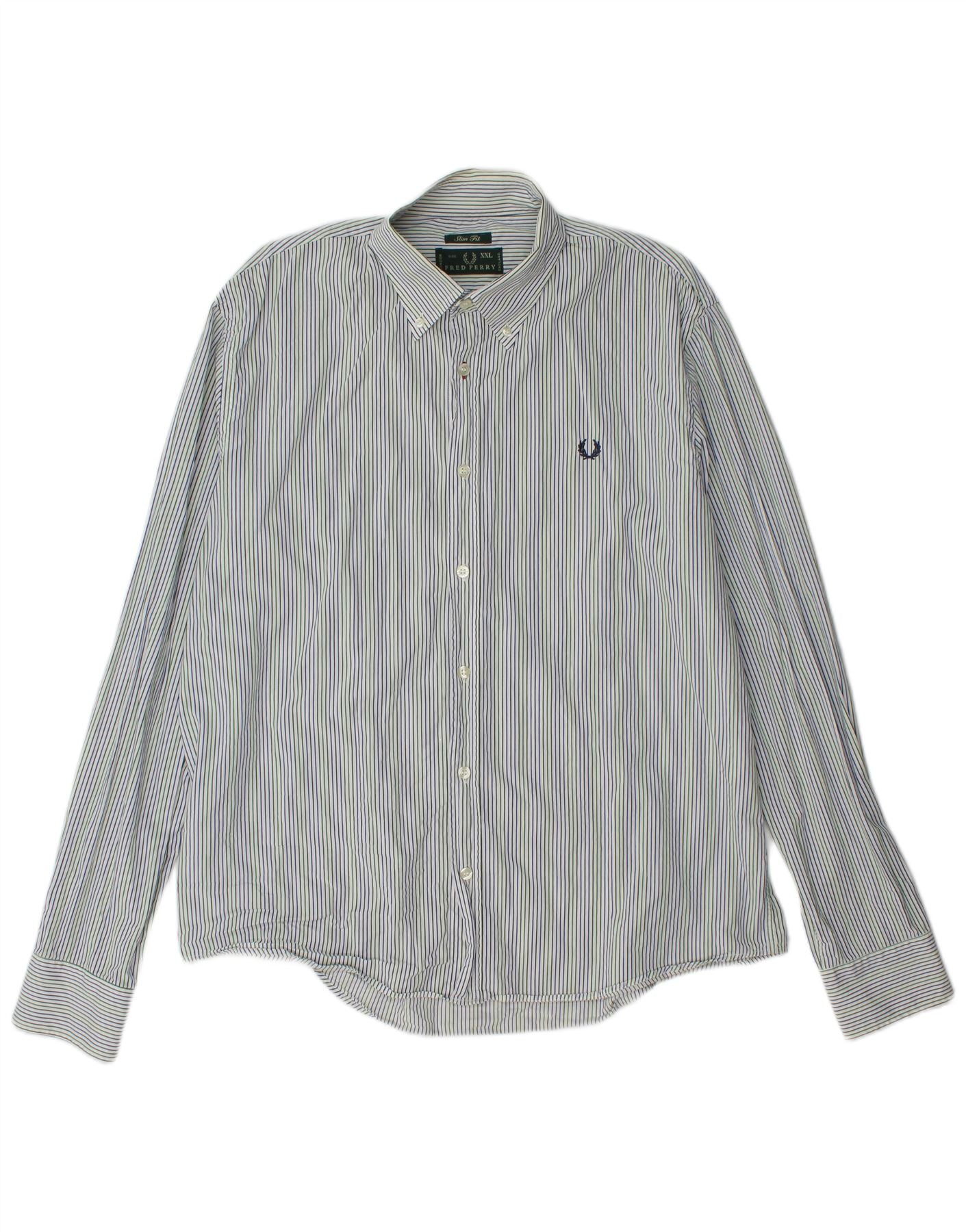 Koszula męska FRED PERRY Slim Fit 2XL, niebieska, bawełniana w prążki