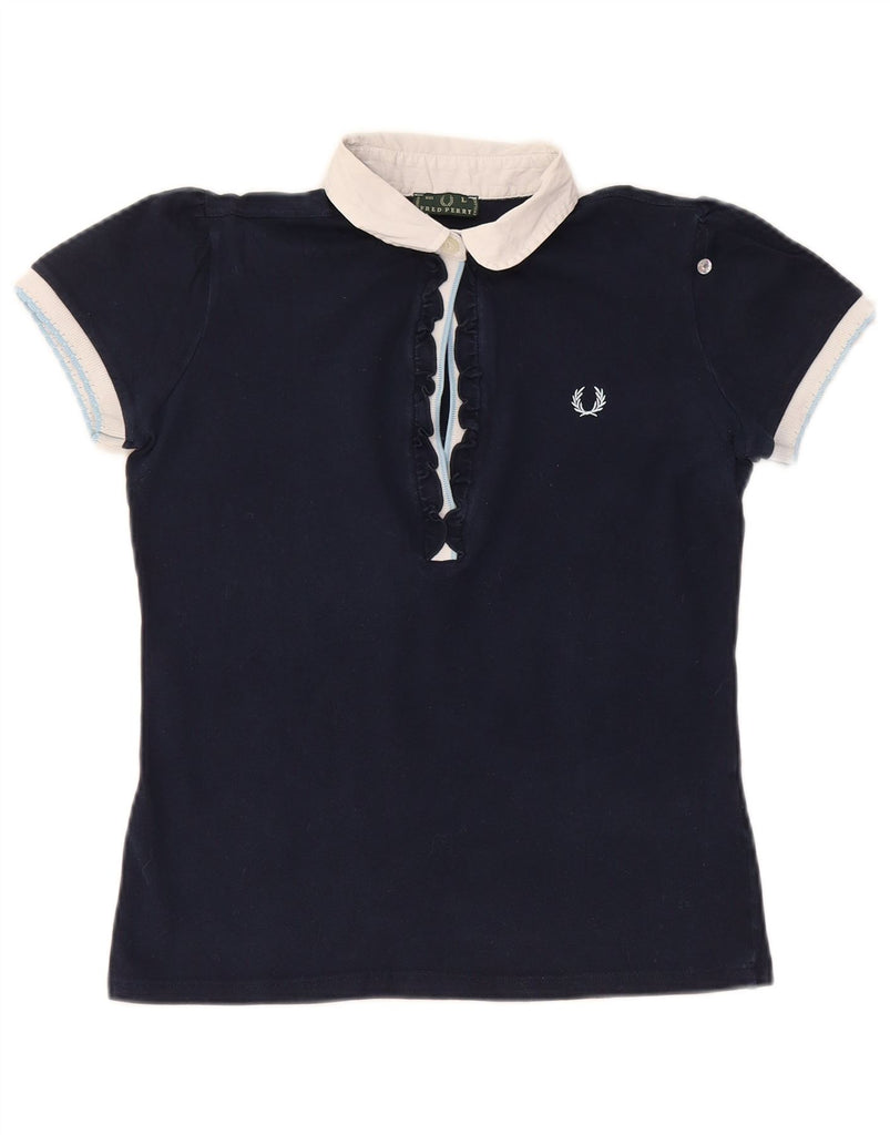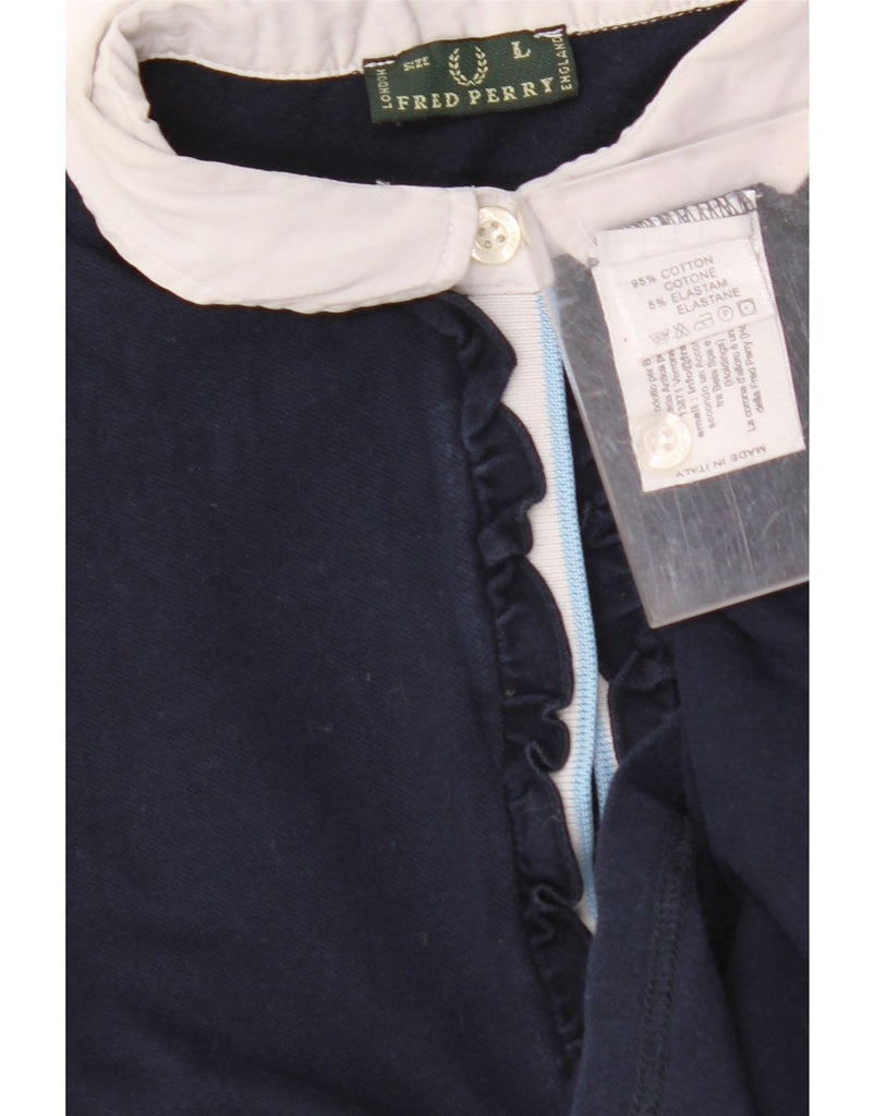 Damska koszulka polo FRED PERRY, UK 14, duża, granatowa, bawełniana w bloki kolorów