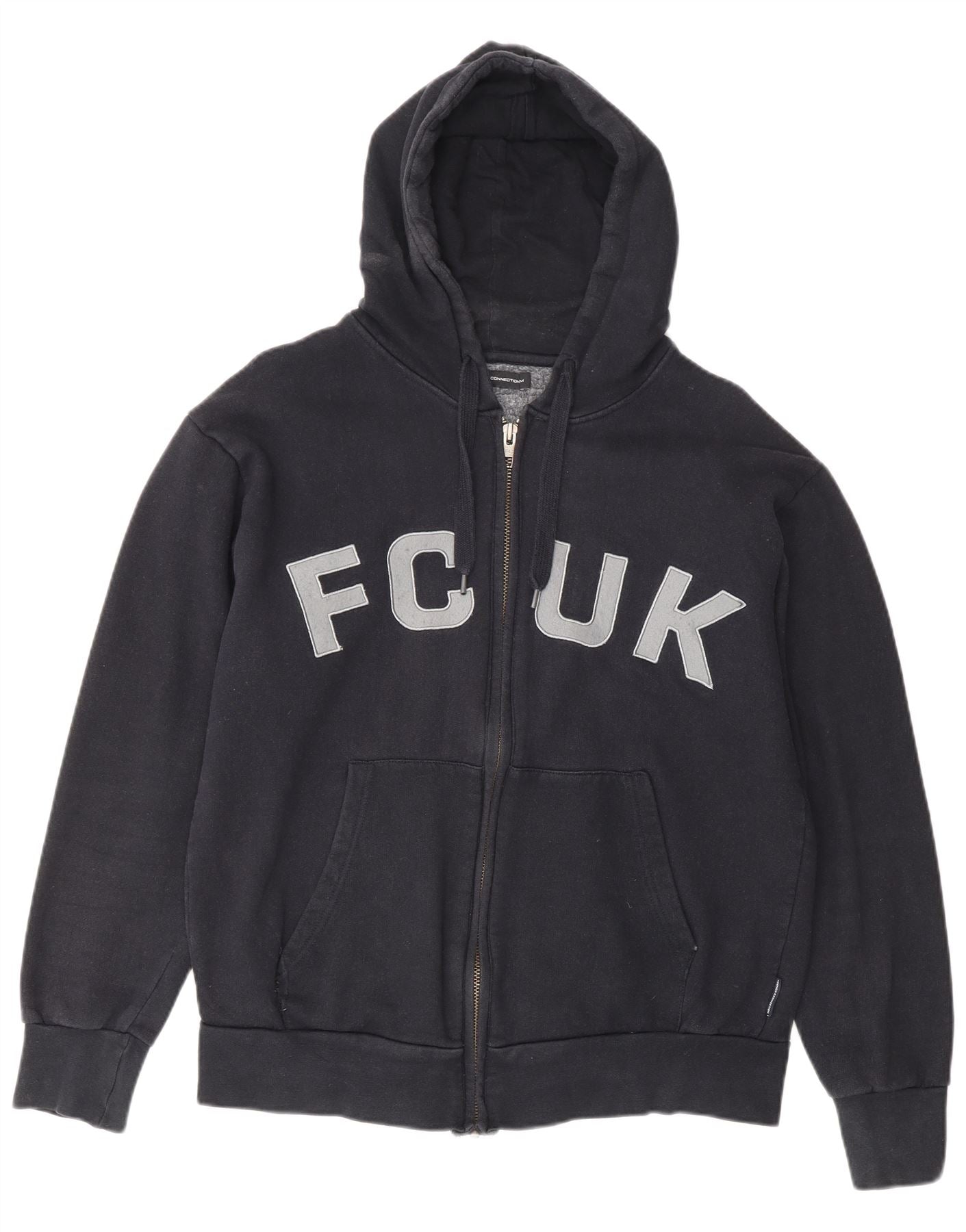 FRENCH CONNECTION Womens Fcuk Zip Hoodie Sweater UK 14 Medium Navy Blue