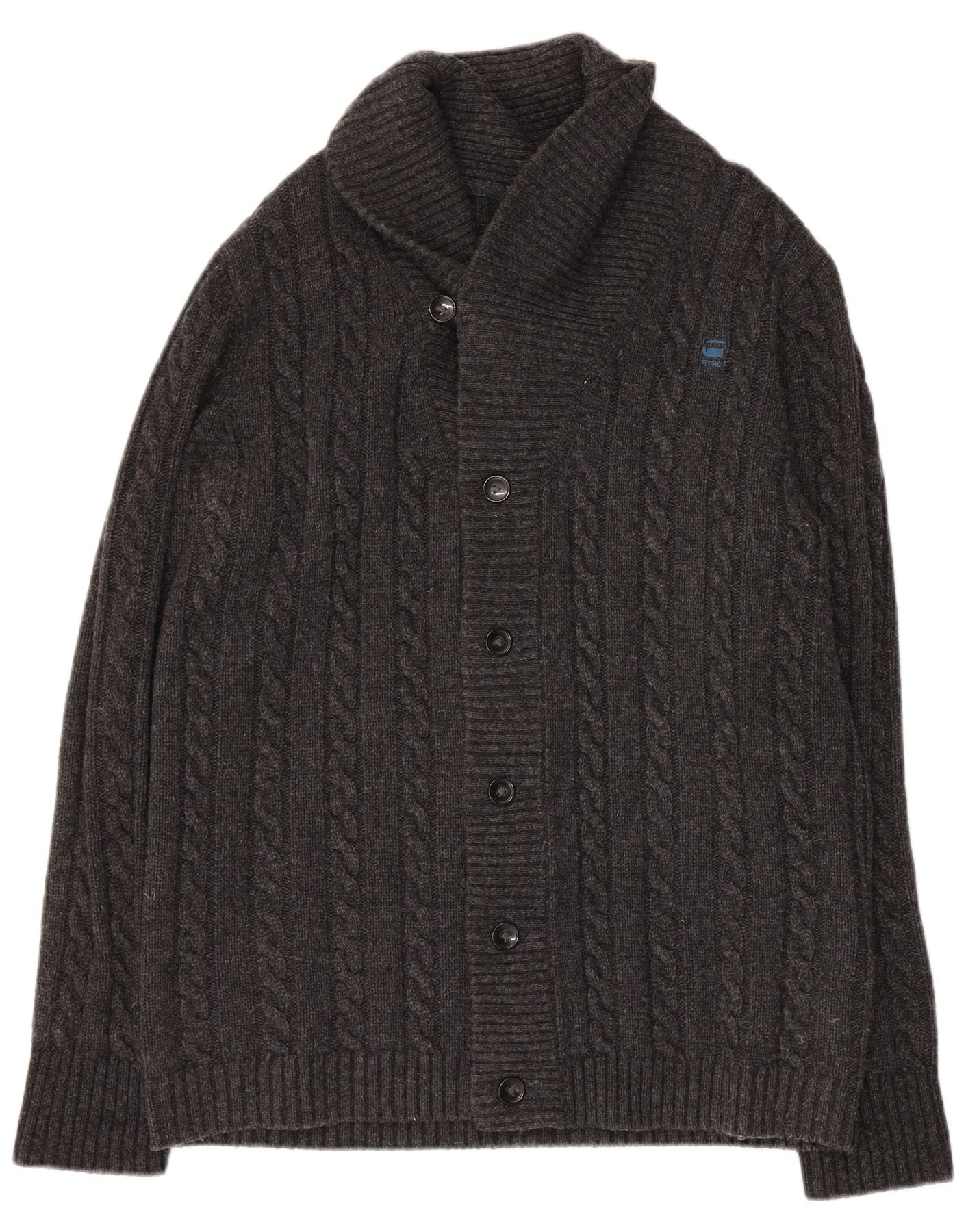- Opis sztucznej inteligencji: Ten męski sweter rozpinany G Star jest wykonany z ciepłej szarej dzianiny z charakterystycznym wzorem warkoczy. Ma klasyczny szalowy kołnierzyk i zapięcie na guziki z przodu. Długie rękawy i regularny krój zapewniają wygodę noszenia. Subtelne niebieskie logo G Star znajduje się na piersi. Mankiety i dół zakończone ściągaczem dopełniają całości.