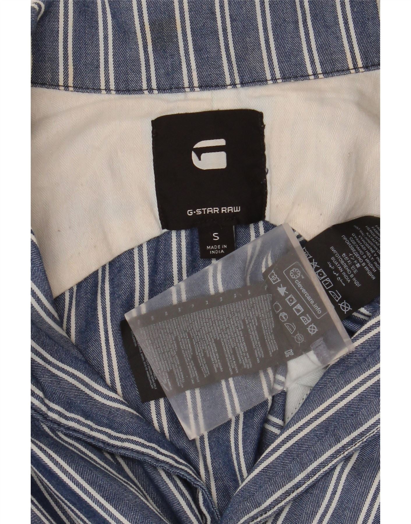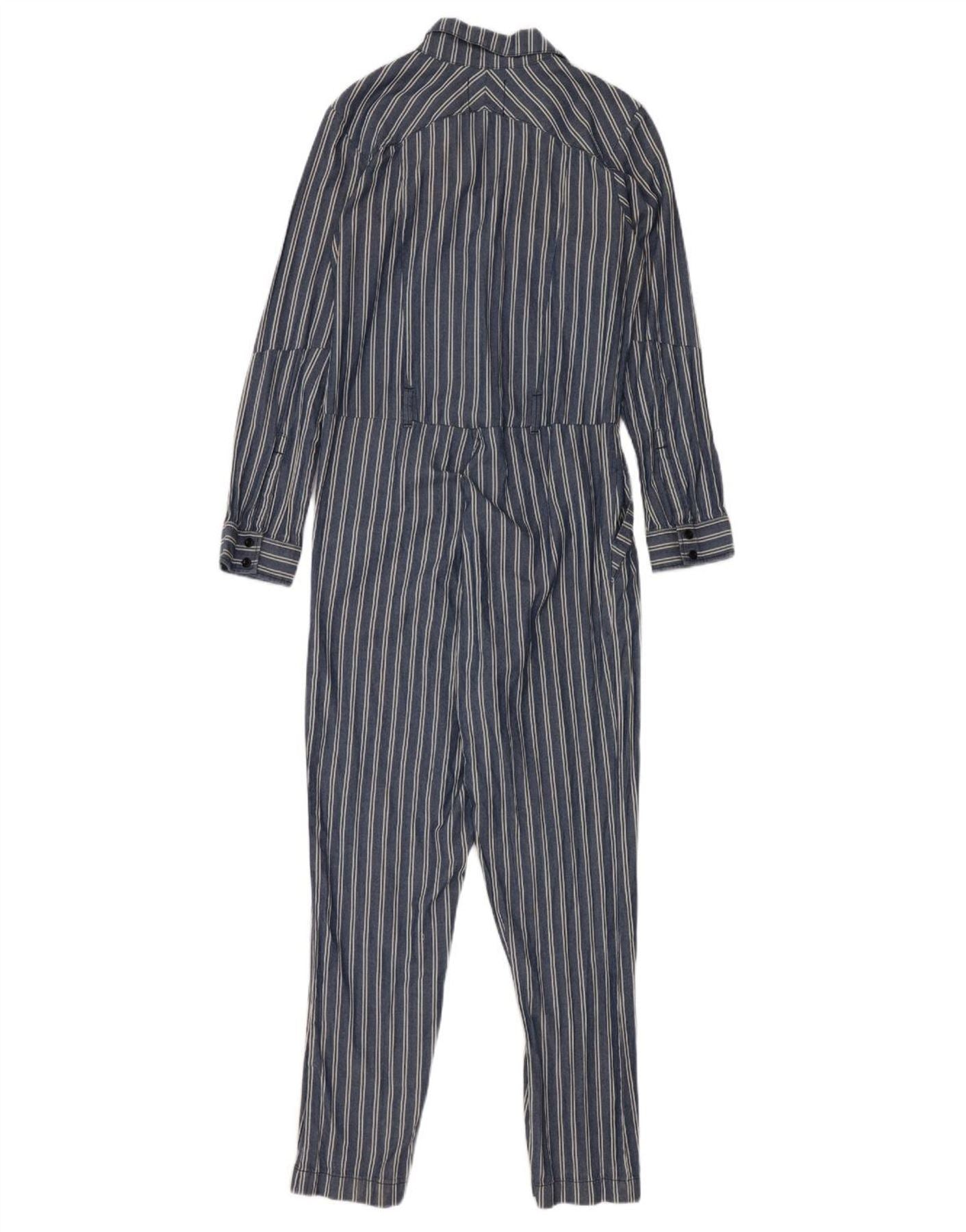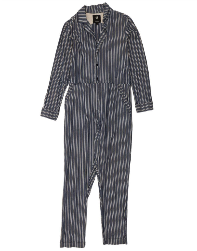 G-STAR Womens Long Sleeve Jumpsuit UK 10 Small Blue Striped Cotton