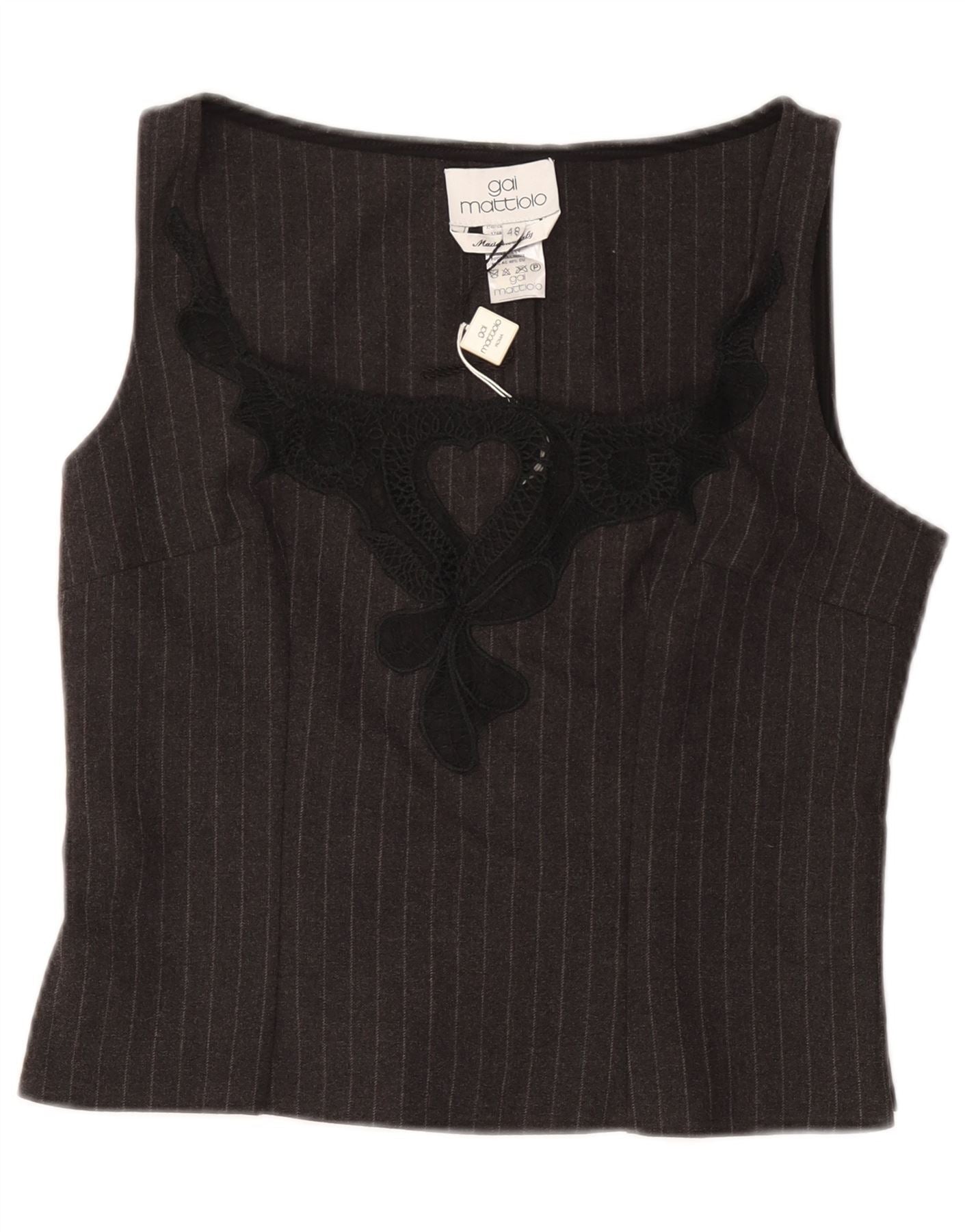 GAI MATTIOLO Damska krótka bluzka bez rękawów IT 48 XL w szare prążki