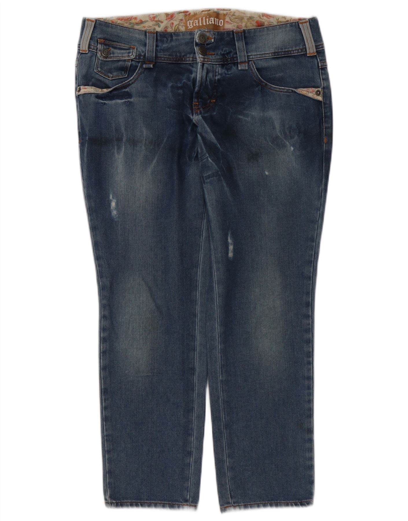 GALLIANO Womens Acid Wash Distressed Cropped Jeans W32 L25 Blue