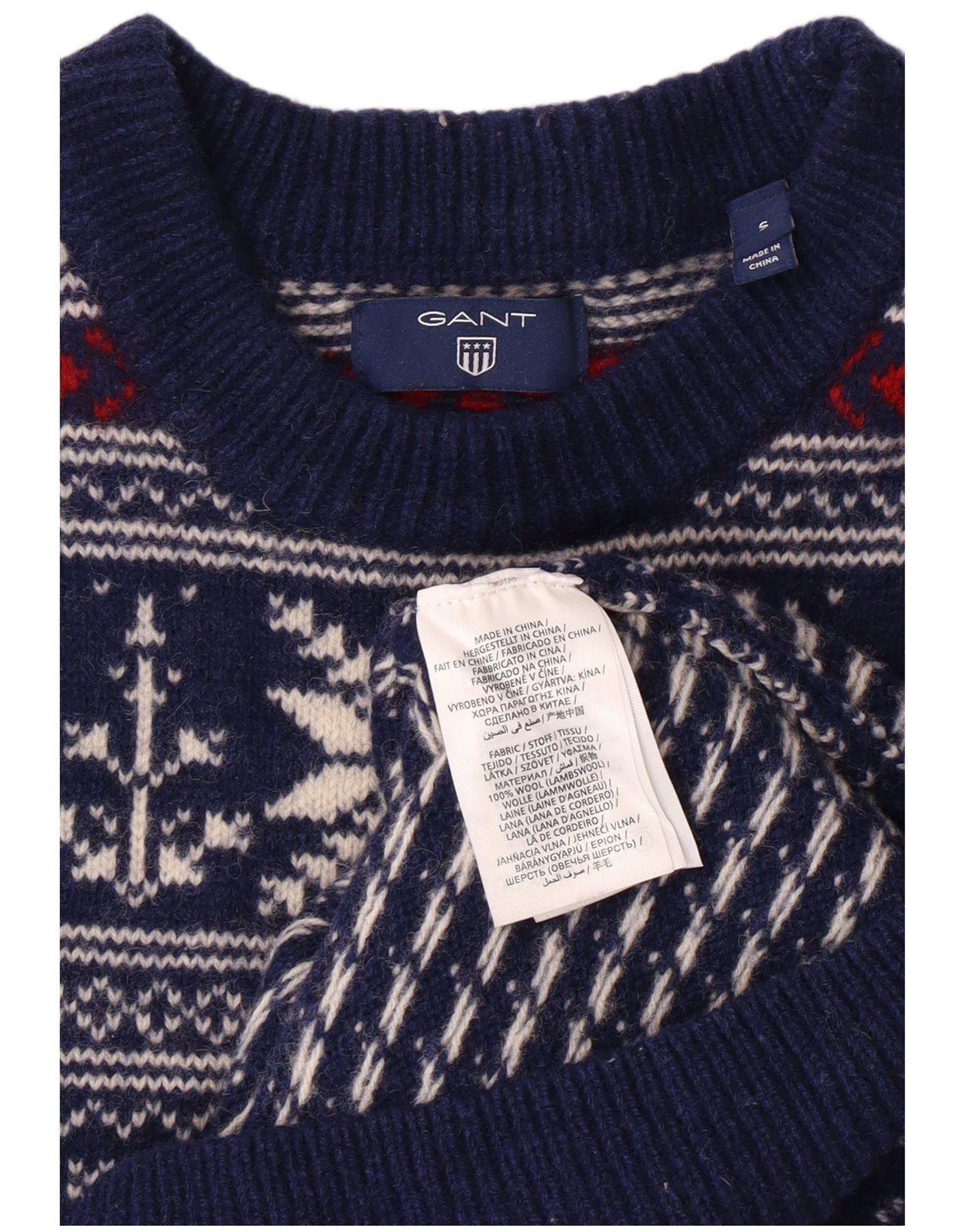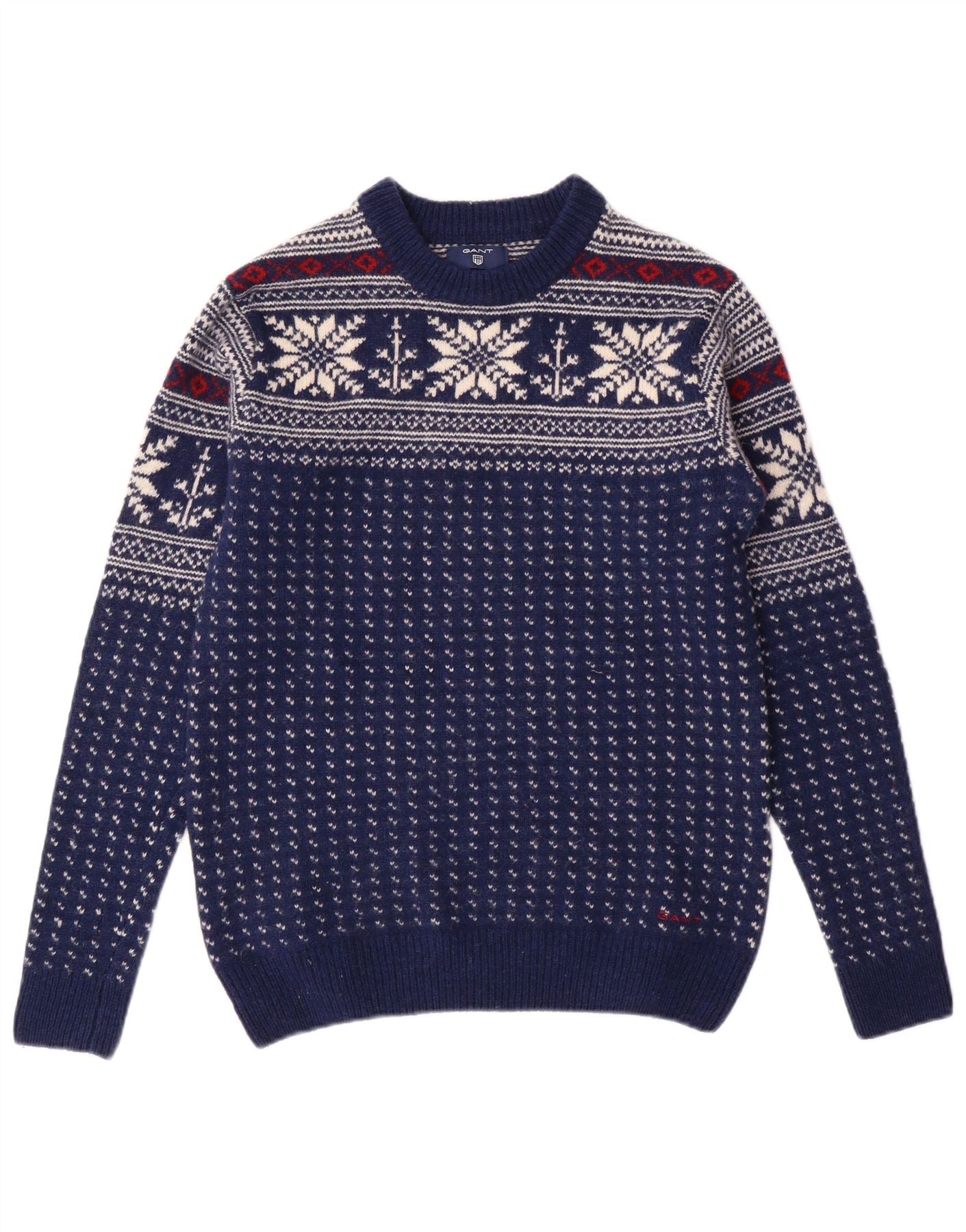 Męski sweter z okrągłym dekoltem GANT, mały, granatowy, z wełny Fair Isle