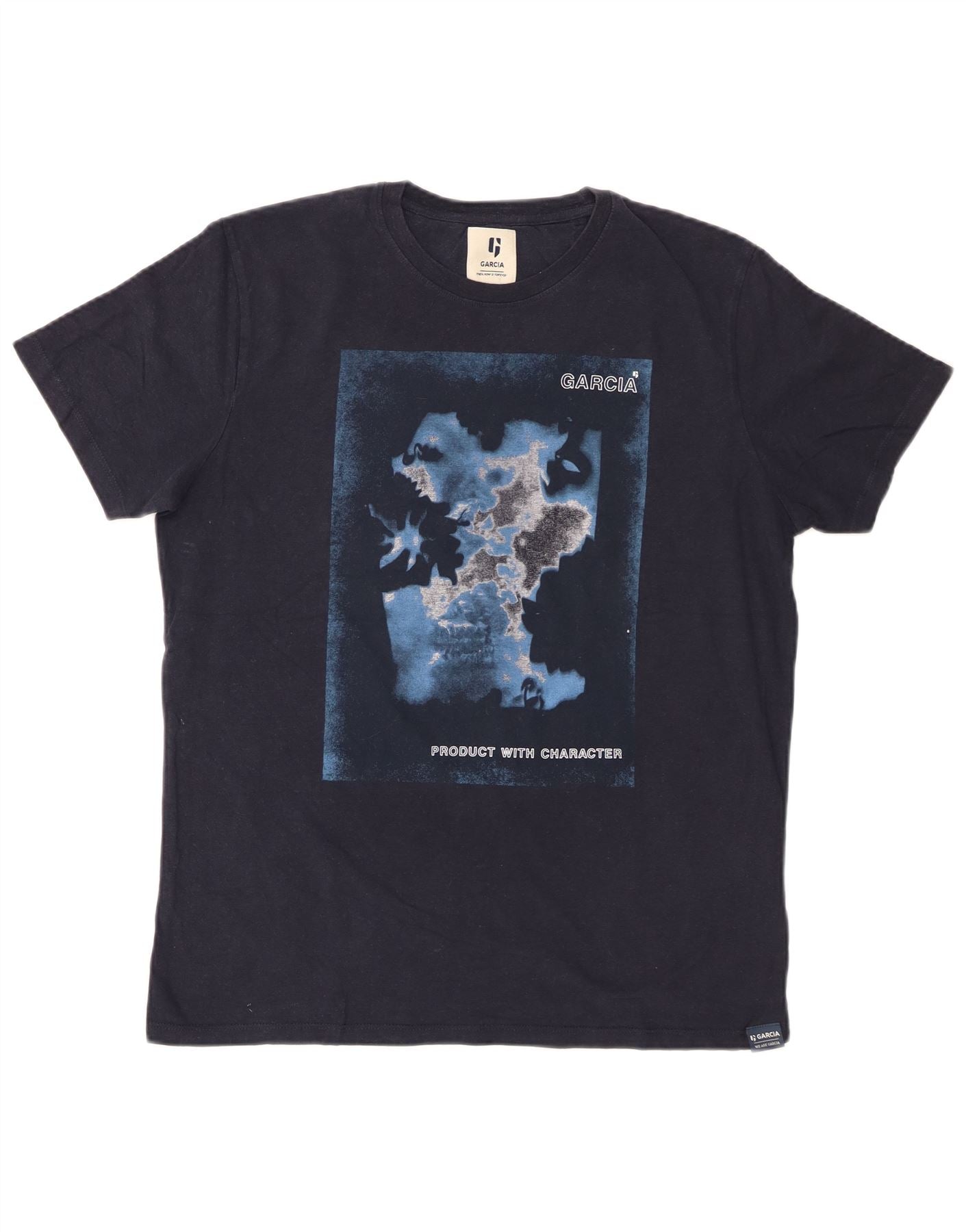 Męski T-shirt z grafiką Garcia, średni, granatowy, bawełniany