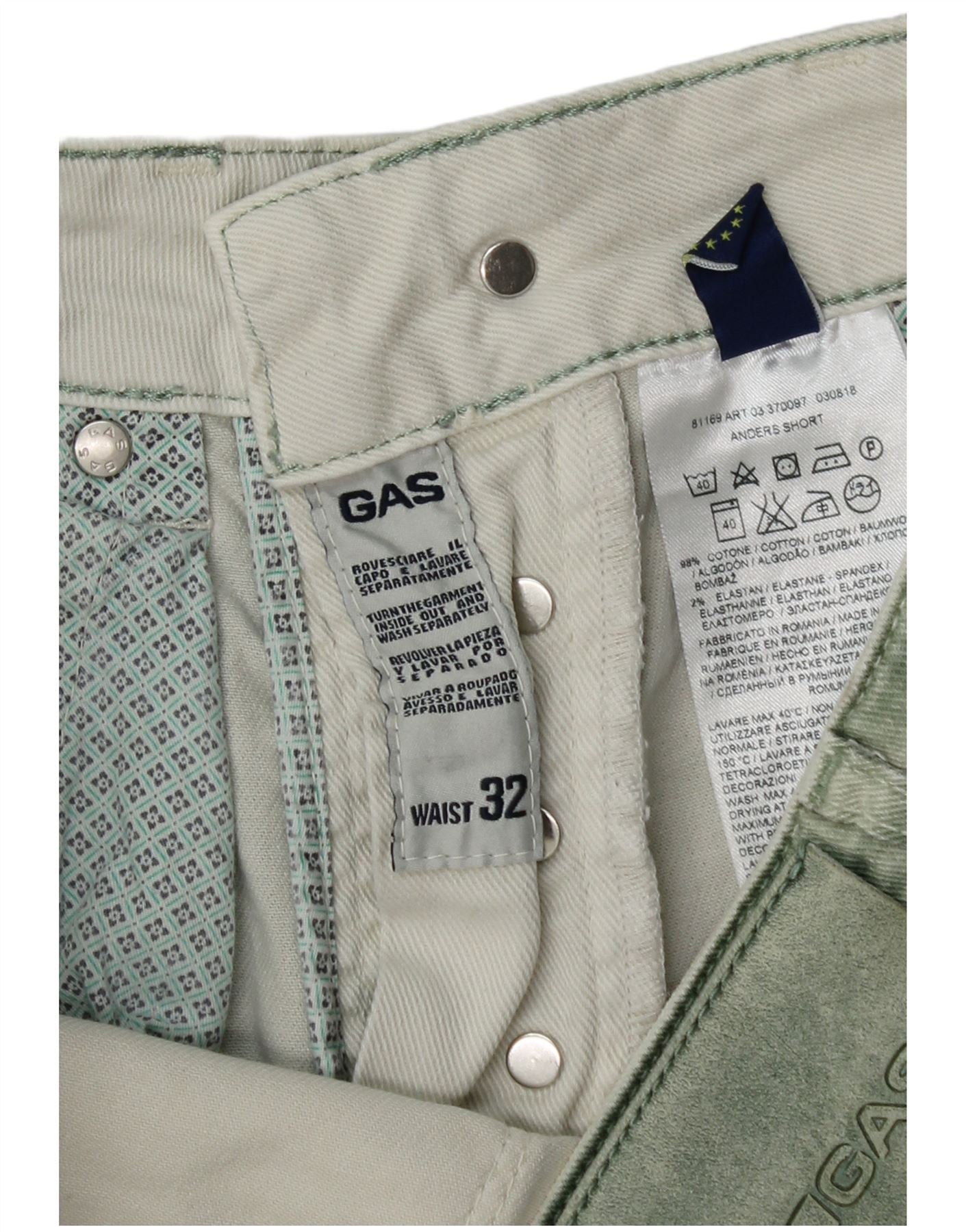 Męskie spodenki jeansowe Gas W32 Średniozielona bawełna