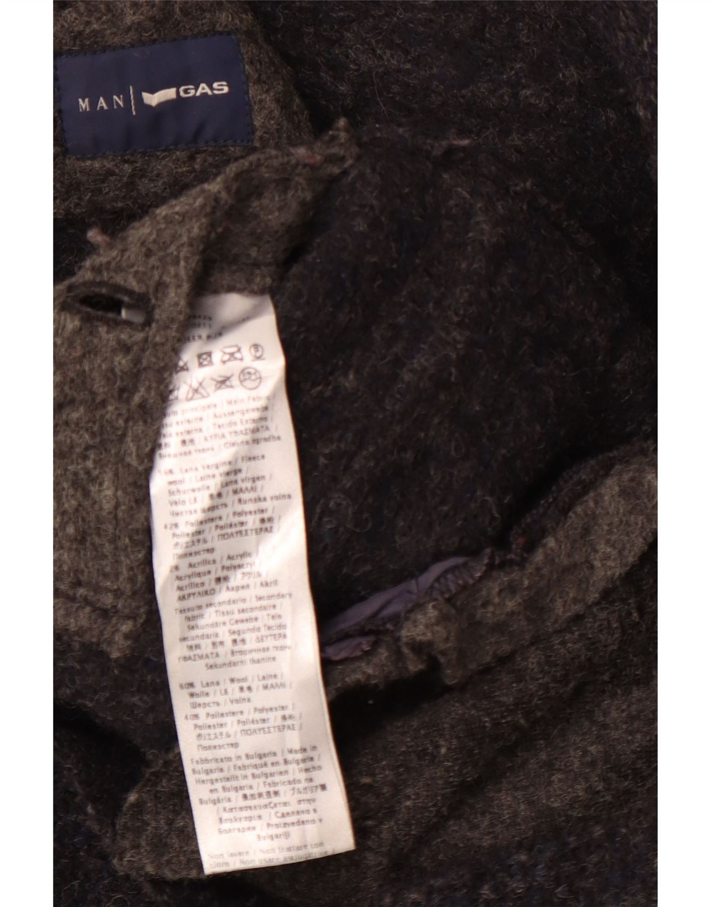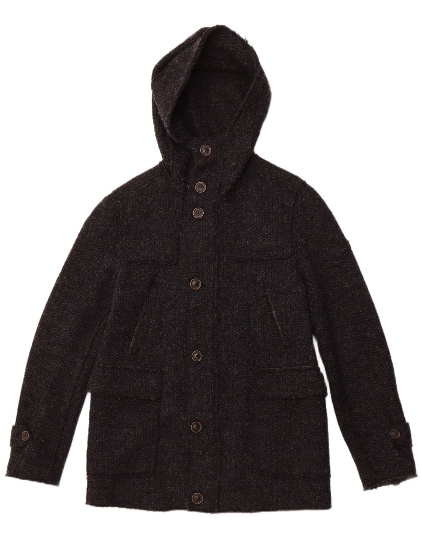 Męski płaszcz z kapturem GAS UK 36, mały, granatowy, z dziewiczej wełny