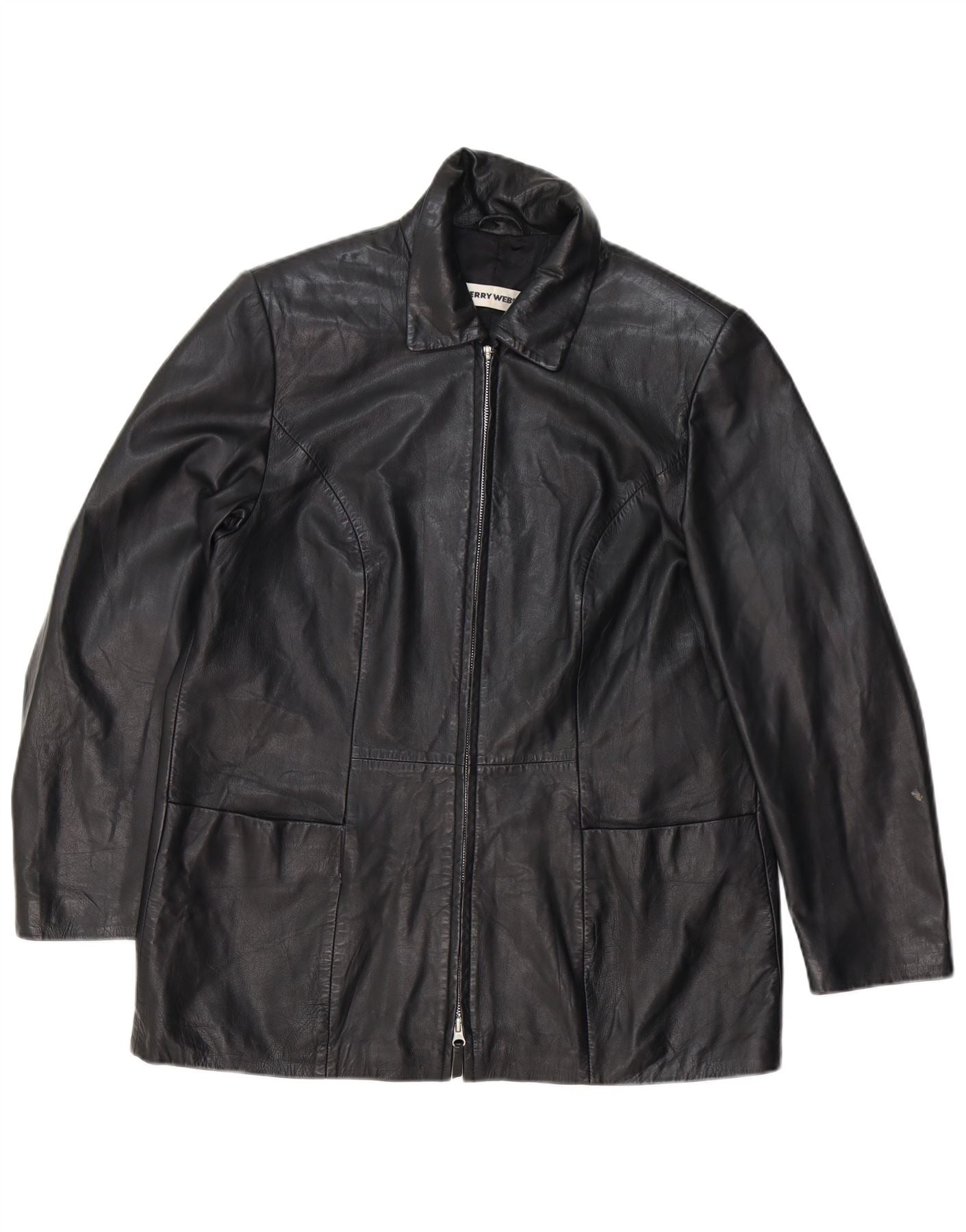 GERRY WEBER Damski płaszcz skórzany UK 16, duży, czarny, skórzany