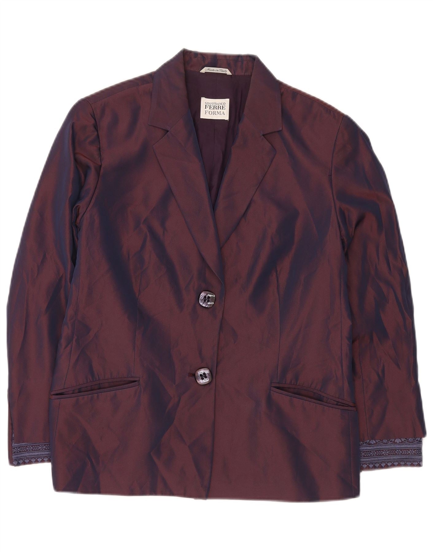 GIANFRANCO FERRE Damska marynarka zapinana na 2 guziki UK 16, duża, fioletowa w kwiaty