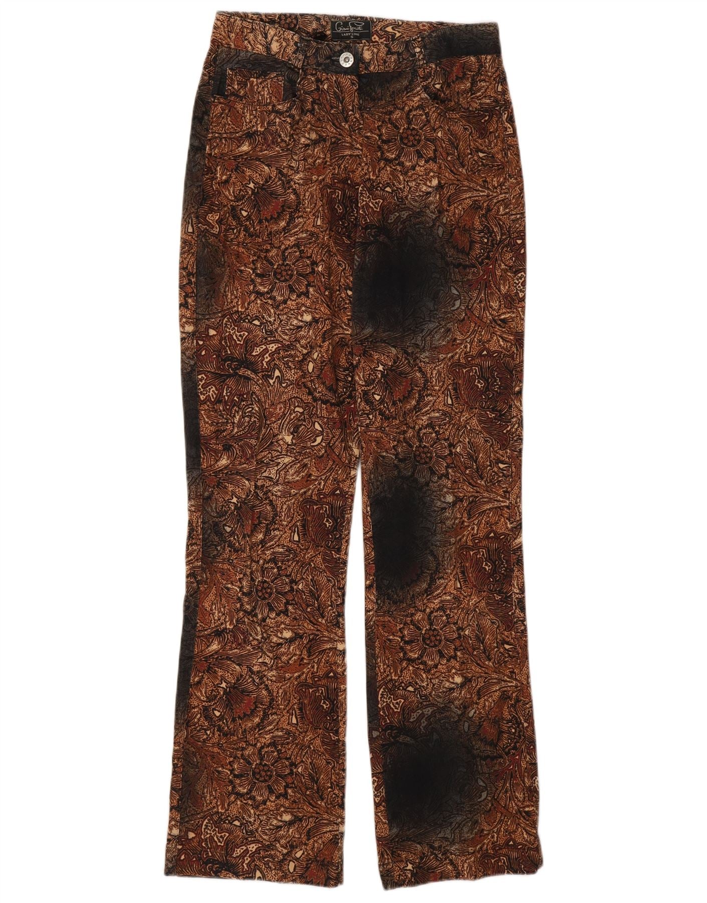 GIANI FEROTI Damskie proste spodnie na co dzień małe W26 L30 brązowe paisley