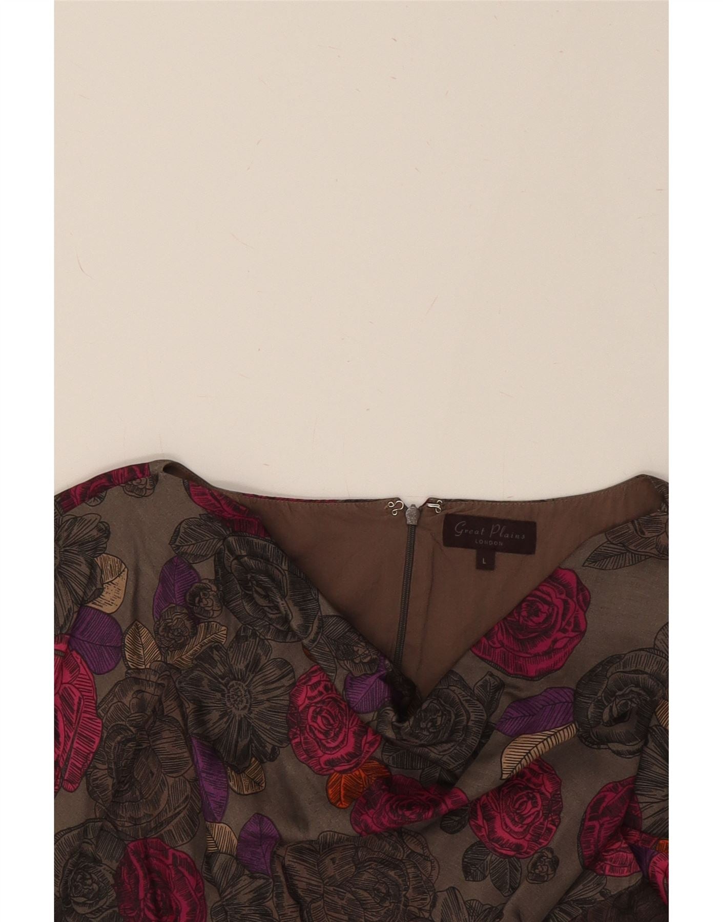 GREAT PLAINS Womens Sleeveless Sheath Dress UK 14 Large Grey Floral Cotton