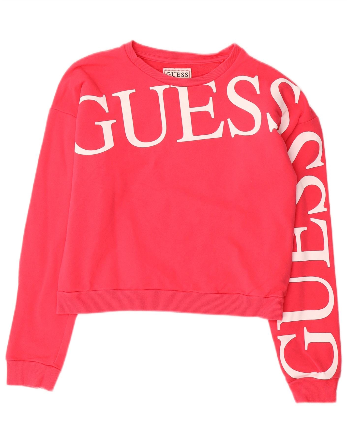 Bluza dziewczęca GUESS Crop Graphic, 13-14 lat, różowa, bawełniana