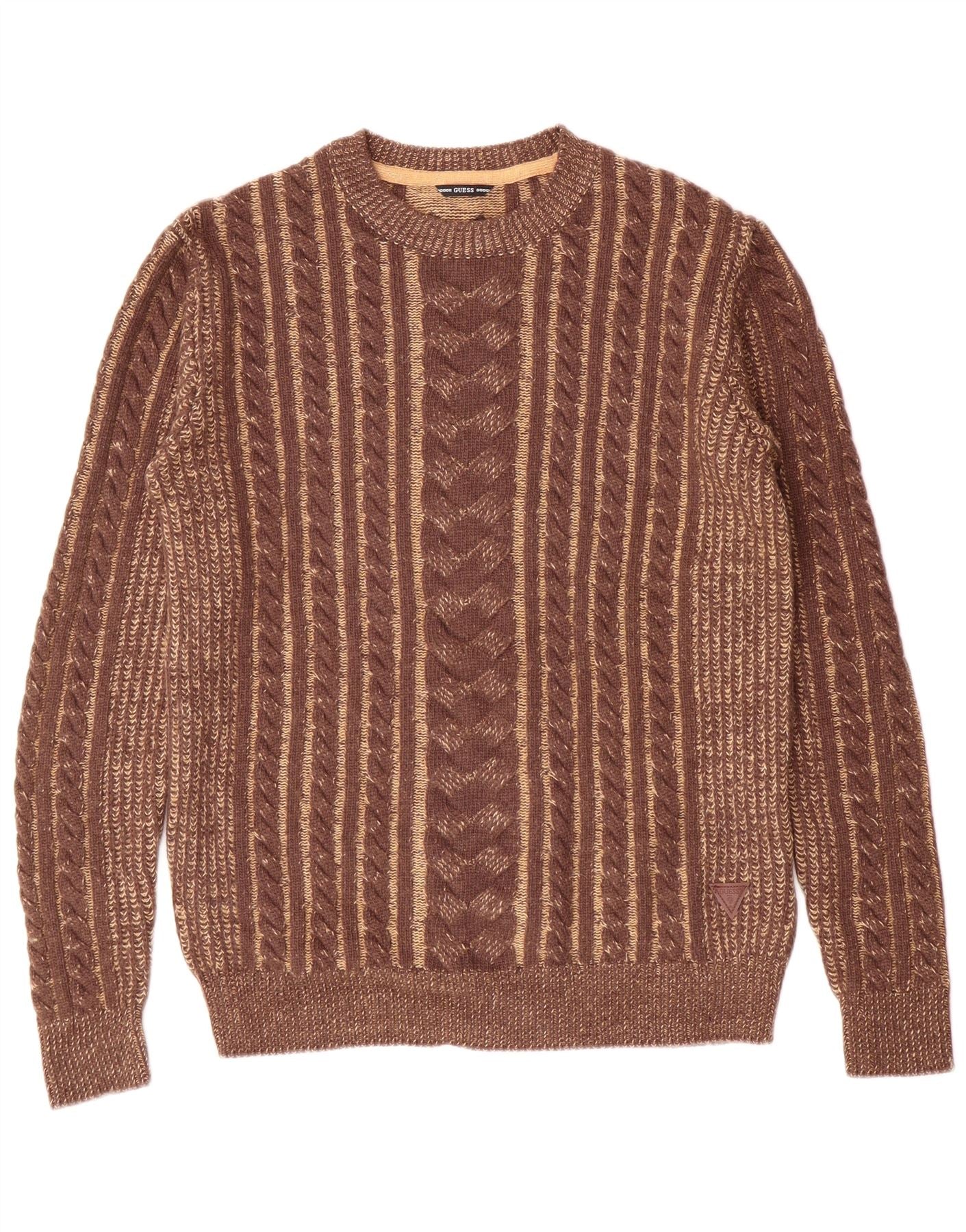 Męski sweter z okrągłym dekoltem GUESS, mały, brązowy poliamid