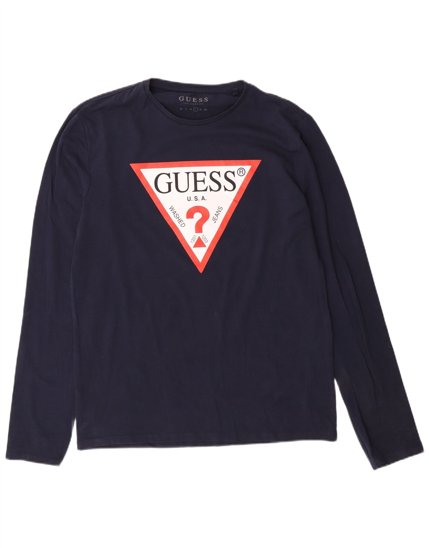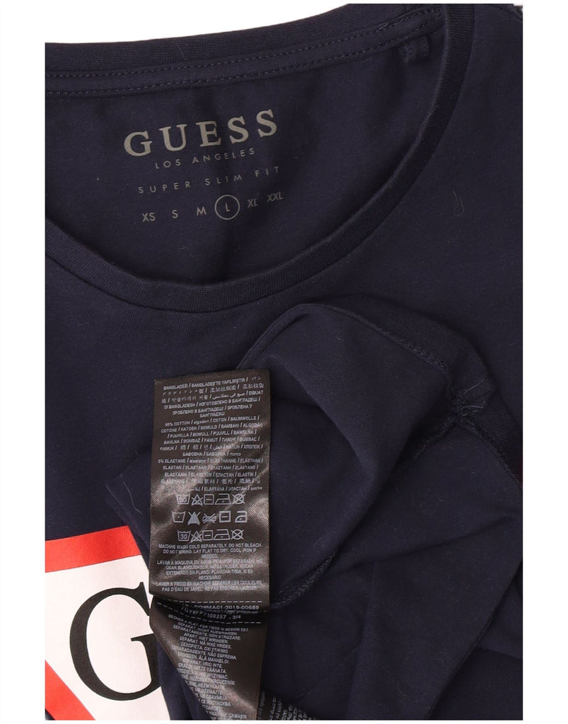 Męski top graficzny GUESS z długim rękawem, duży, granatowy, bawełniany