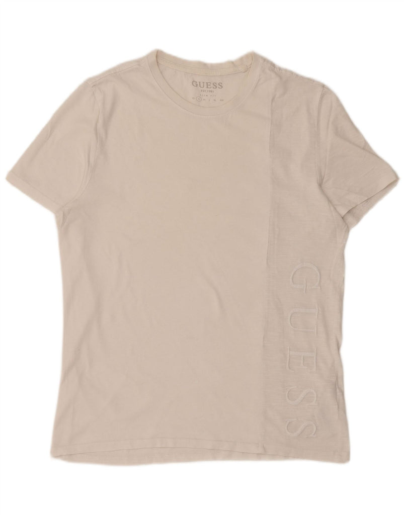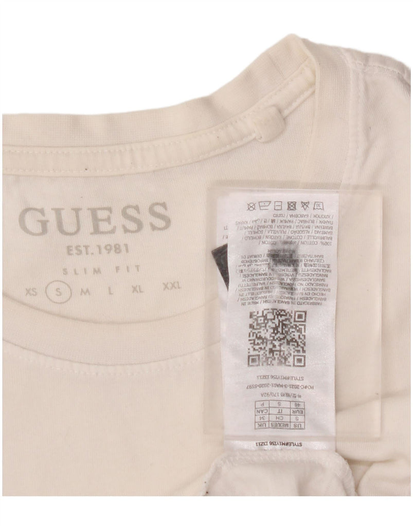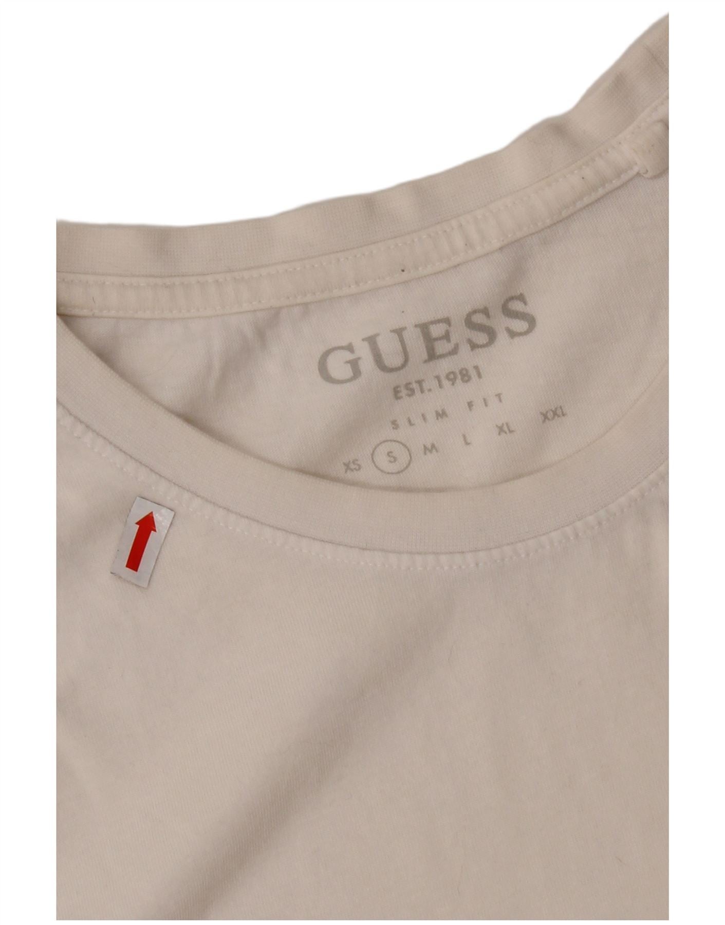 Męski T-shirt GUESS o dopasowanym kroju z grafiką, mały, biały, bawełniany