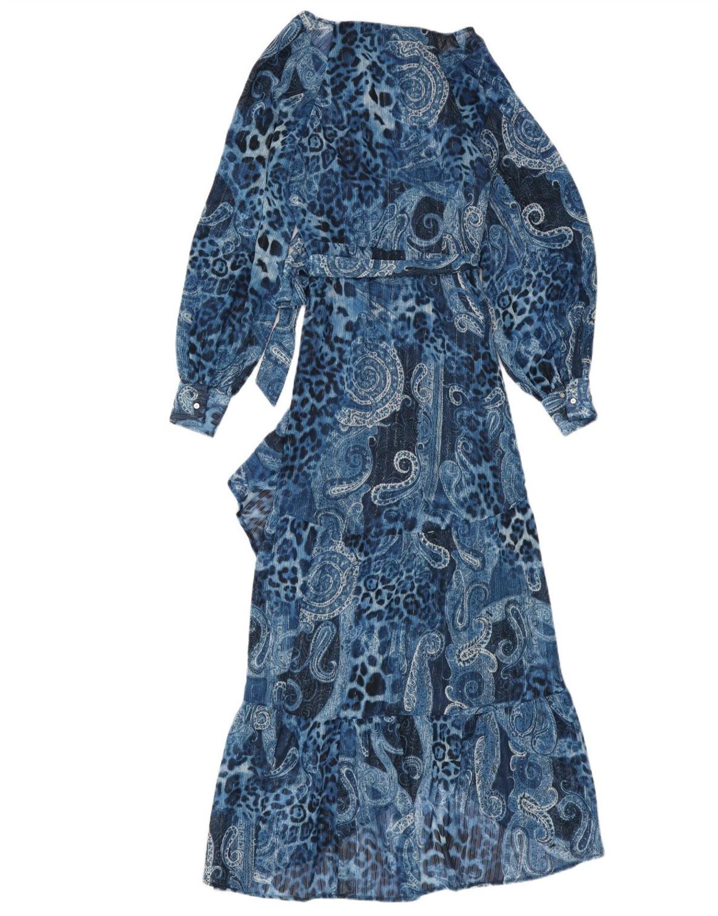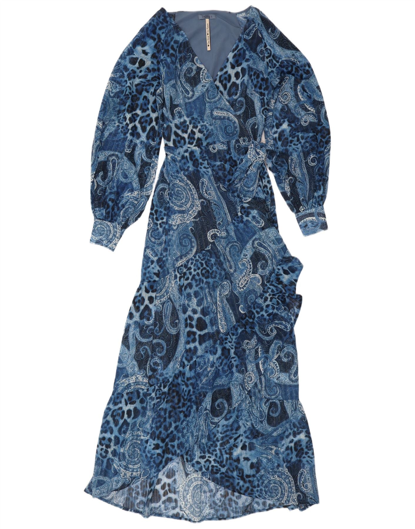 Damska asymetryczna sukienka kopertowa GUESS UK 10, mała niebieska, poliester Paisley