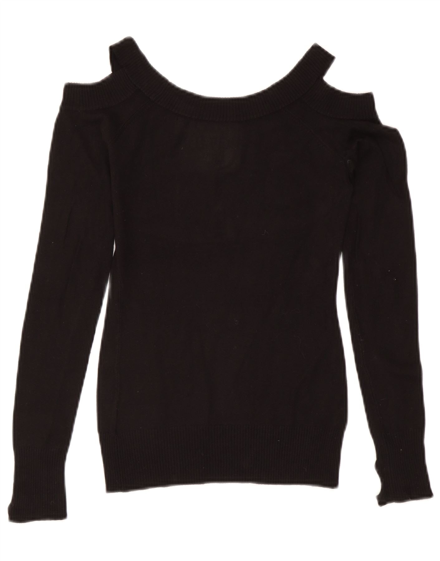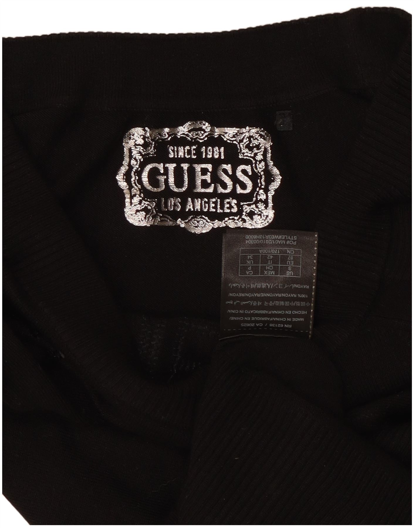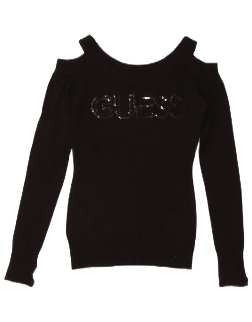 Damski sweter GUESS z graficznym dekoltem w łódkę, UK 8, mały, czarny