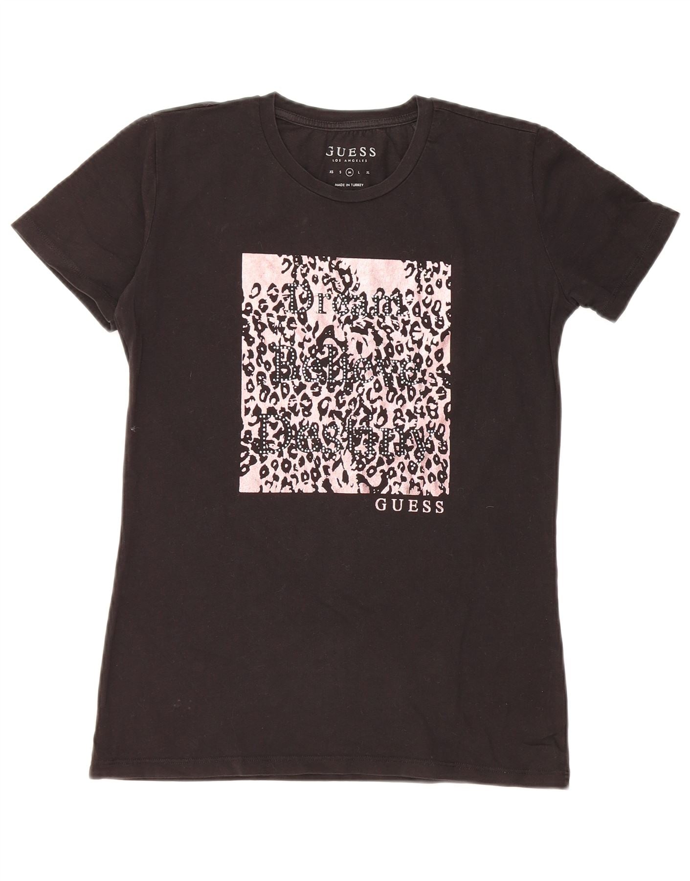 Damska koszulka graficzna GUESS Top UK 12, średnia czarna bawełna