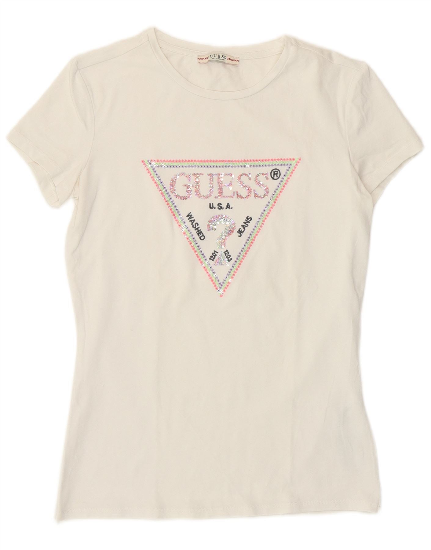 Damska koszulka graficzna Guess Top UK 12, średnia biała bawełna
