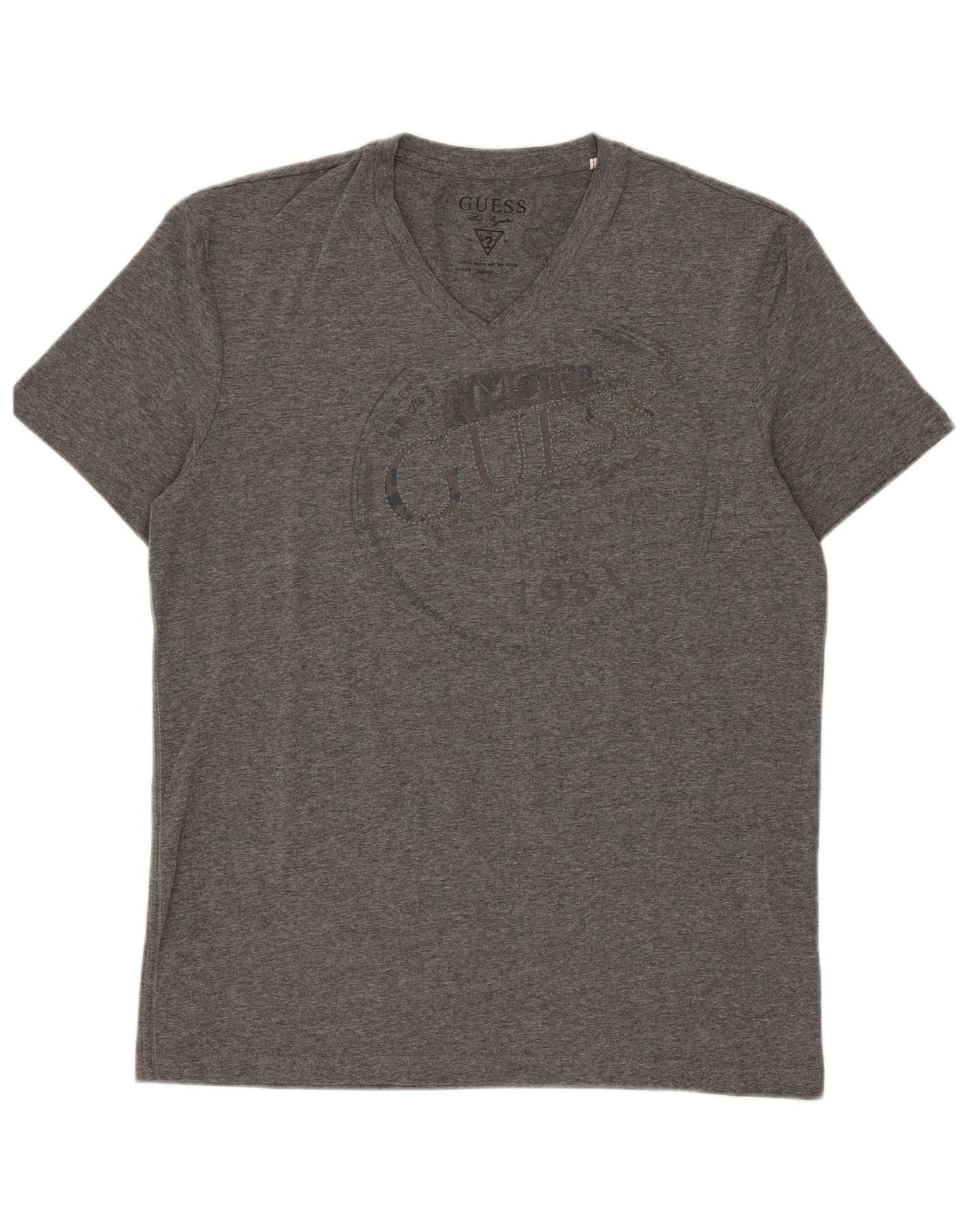 Damska koszulka graficzna Guess Top UK 14, duża, szara bawełna