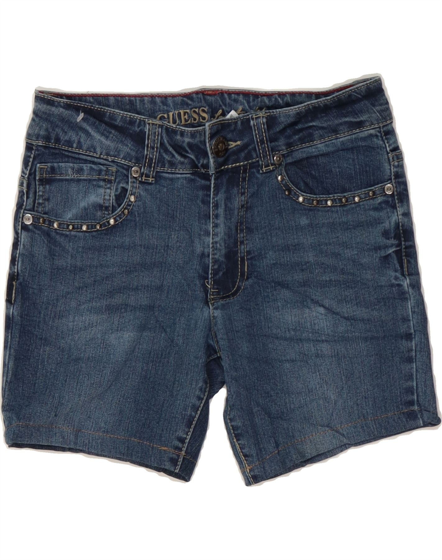 GUESS Womens High Waist Denim Shorts US 14 XL W30 Blue Floral Cotton