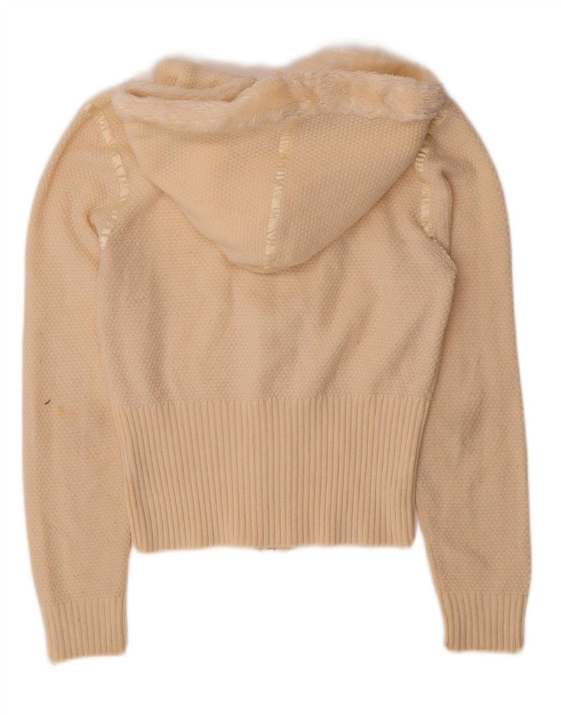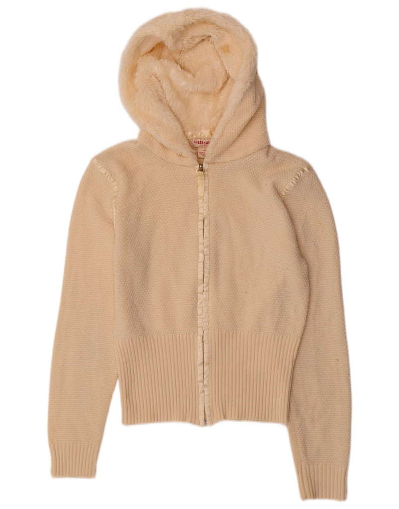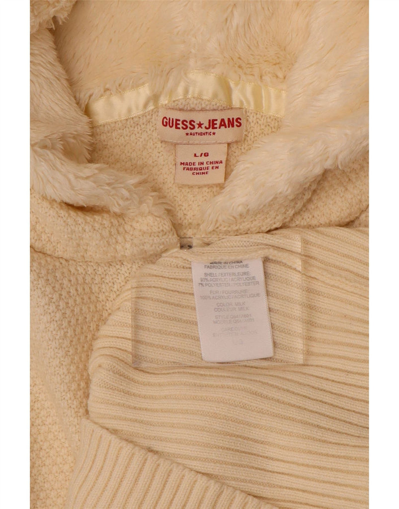 Damski sweter rozpinany z kapturem GUESS UK 14, duży, złamany biały akryl