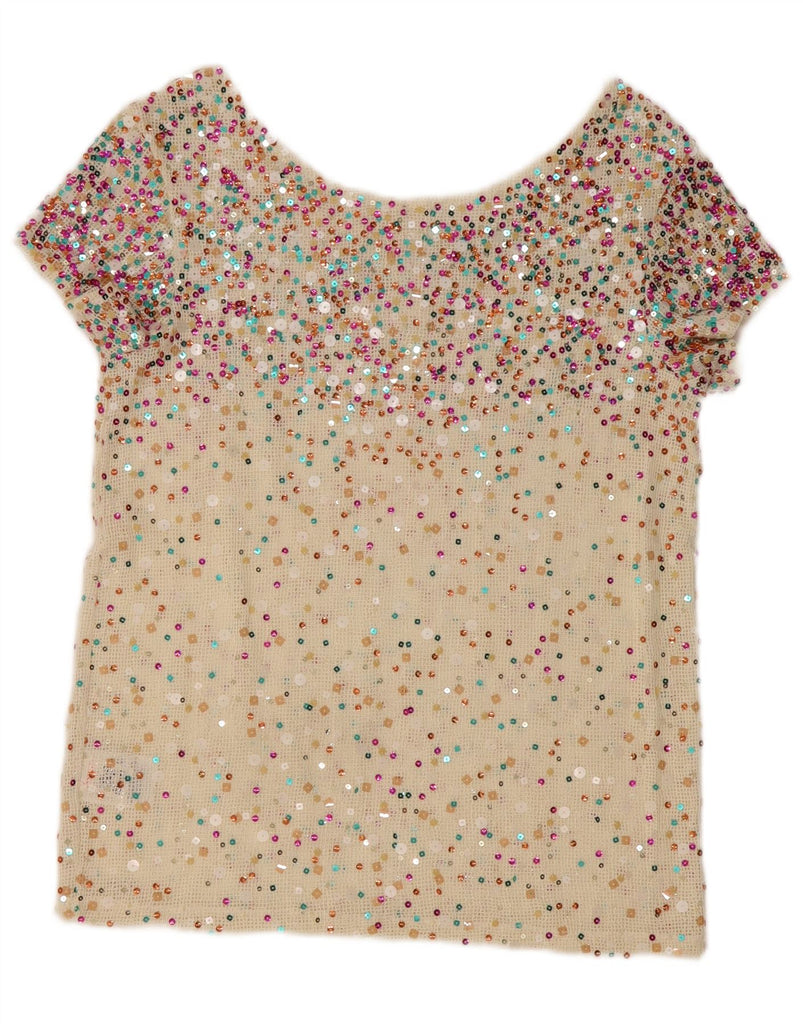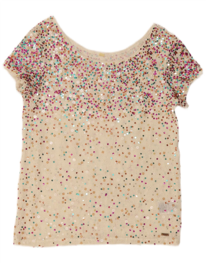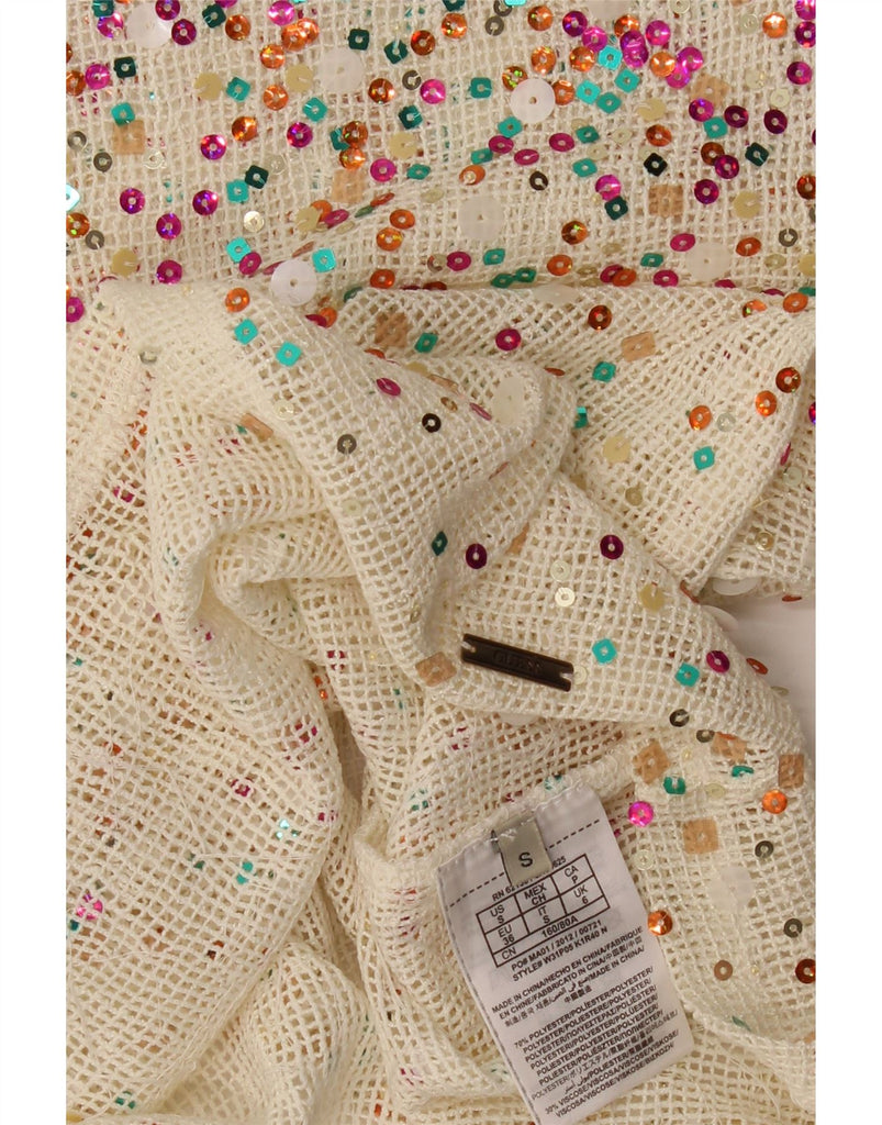 Damska bluzka GUESS z cekinami, szydełkiem, UK 10, mała, złamana biel, poliester