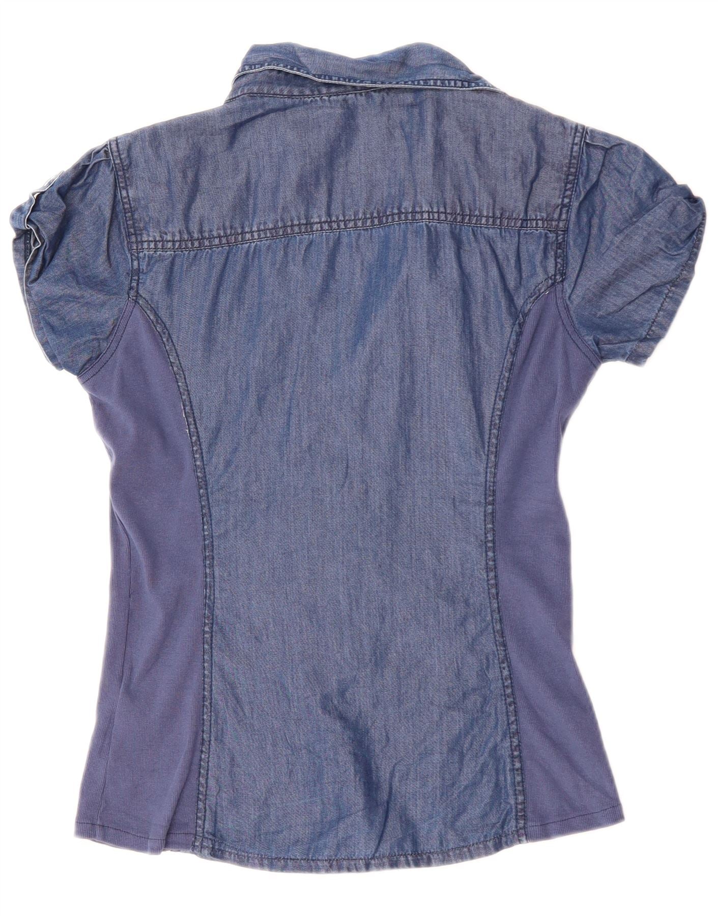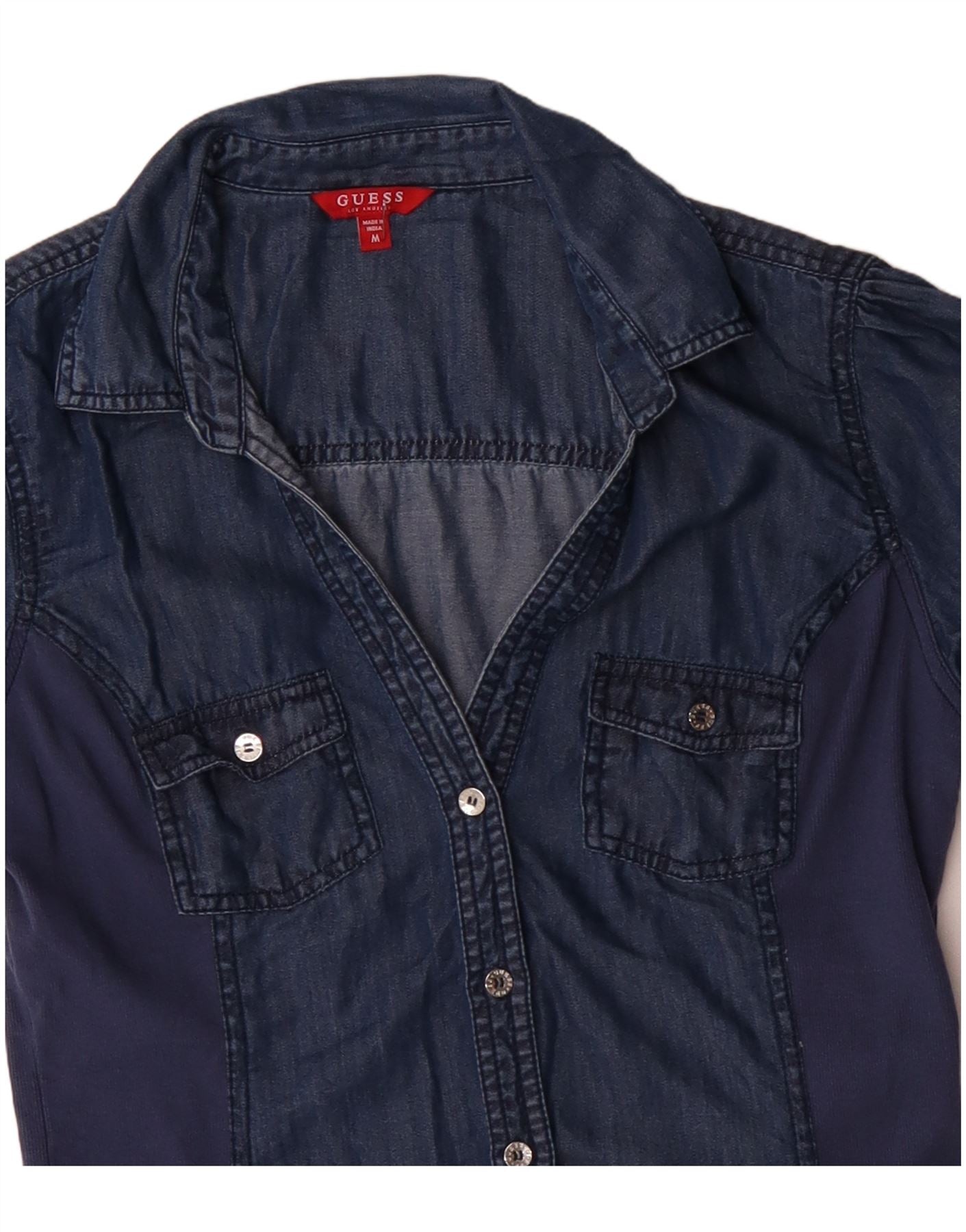Damska bluzka dżinsowa z krótkim rękawem GUESS UK 12 Średni granatowy Tencel