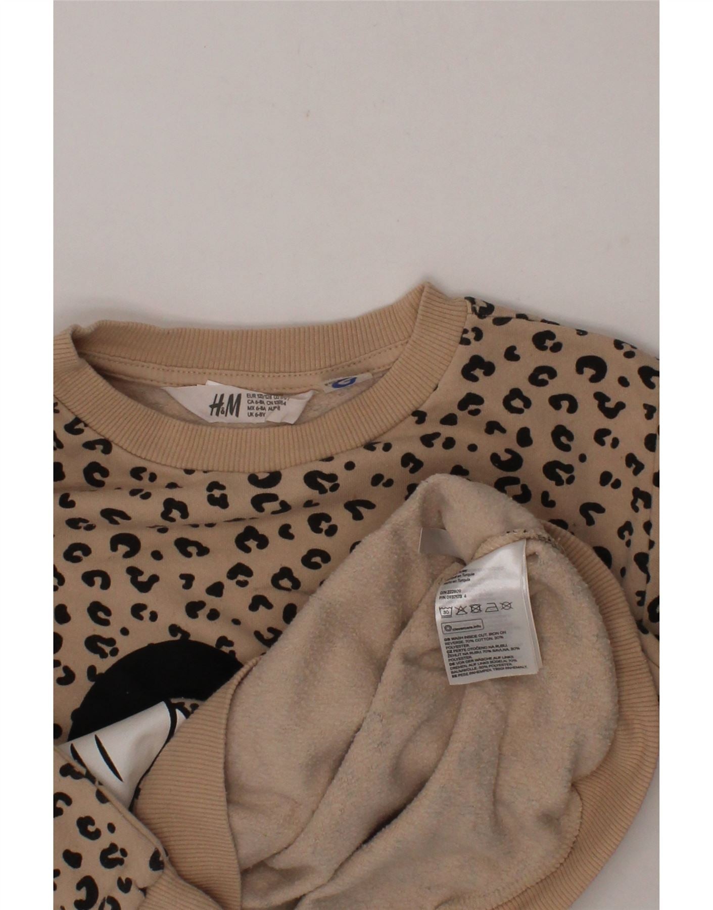 H&M Girls Mickey Mouse Sweatshirt Jumper 6-7 Years Beige Animal Print