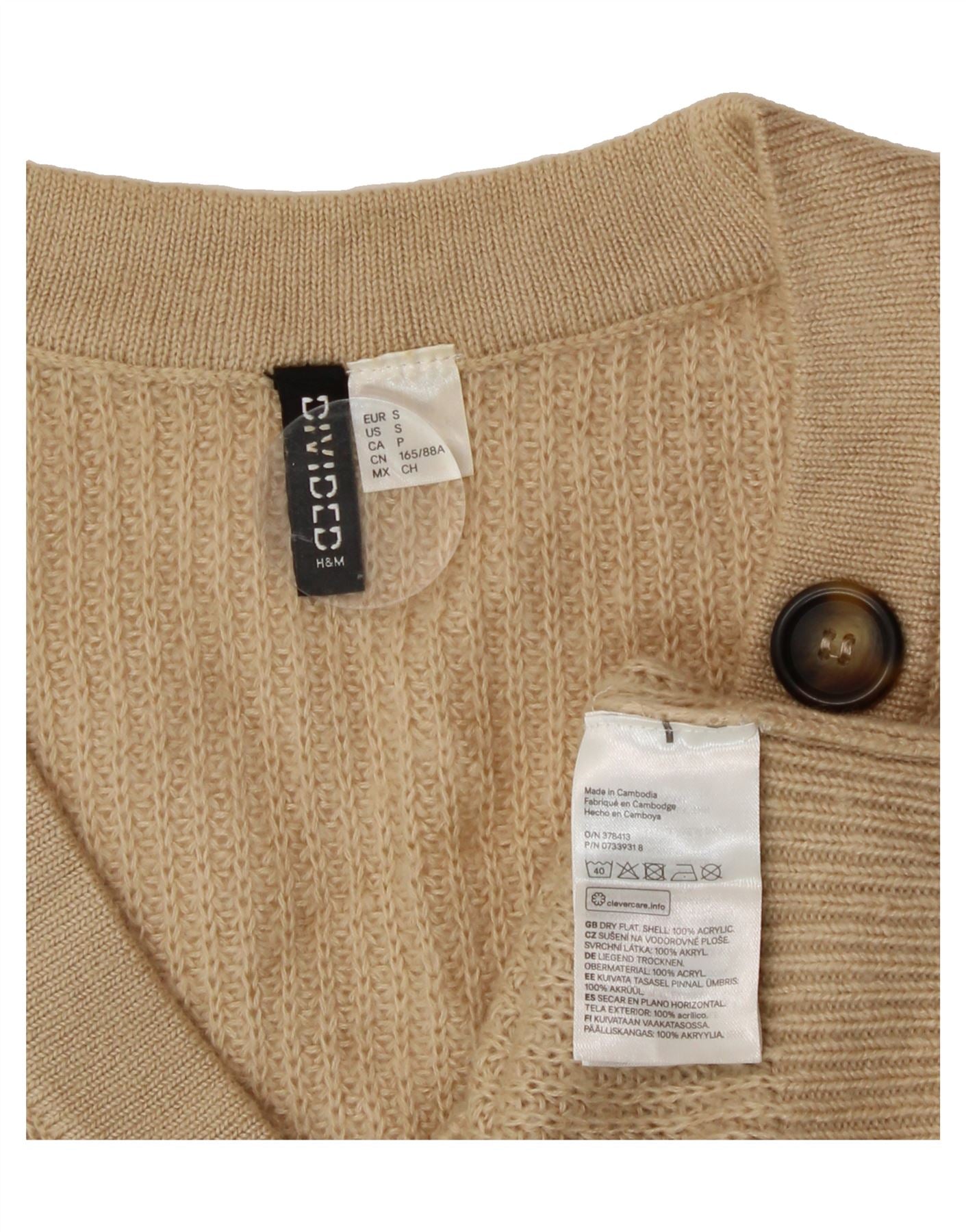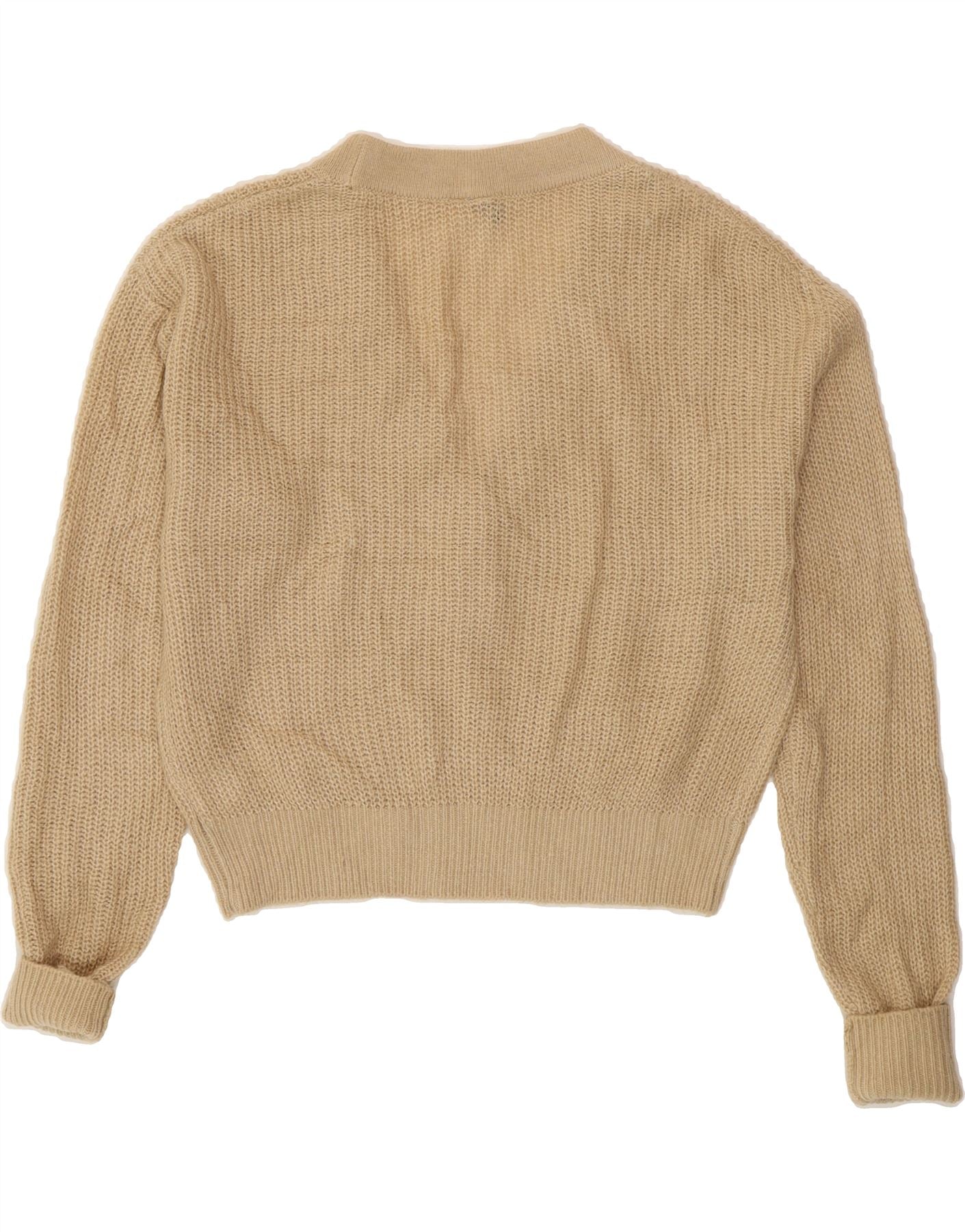 H&M Womens Oversized Crop V-Neck Jumper Sweater UK 10 Small Beige Acrylic