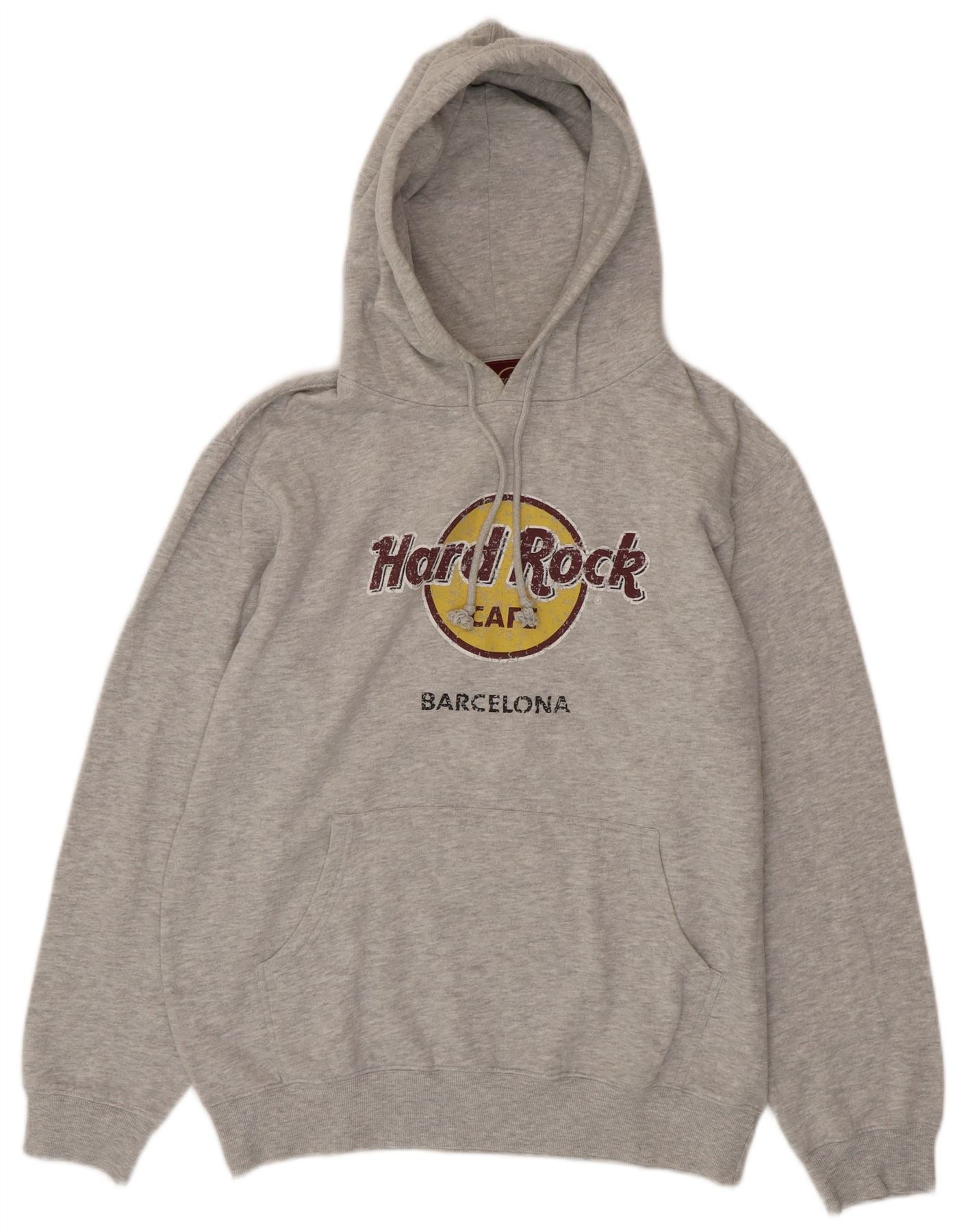Męski sweter z kapturem i grafiką HARD ROCK CAFE Barcelona, duży, szary, bawełniany