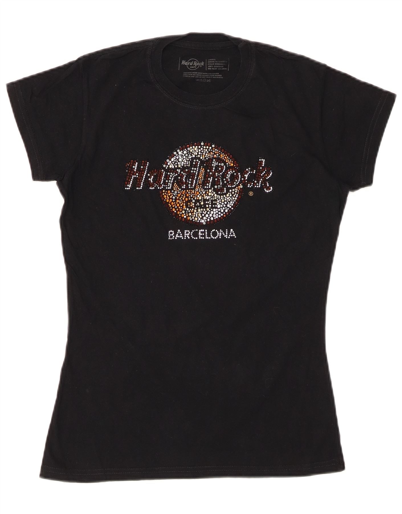 T-shirt damski HARD ROCK CAFE Barcelona z grafiką Top UK 10, mały, czarny