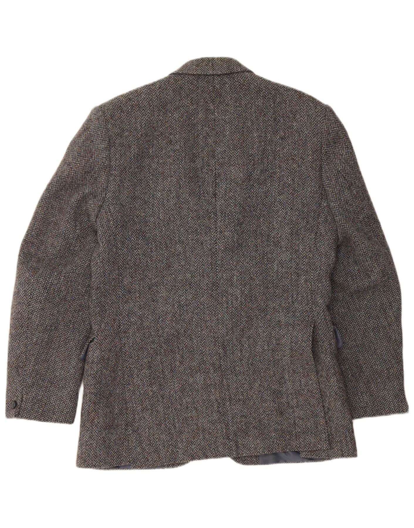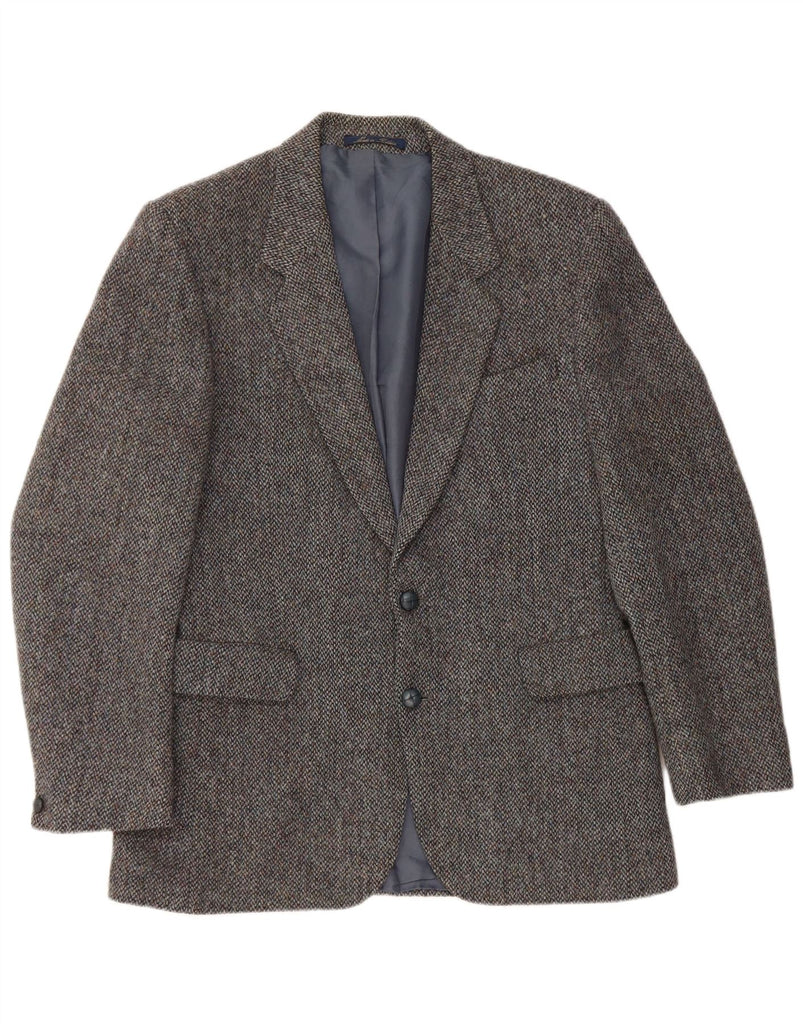 HARRIS TWEED Mens 2 Button Blazer Jacket UK 38 Medium Grey Flecked Wool