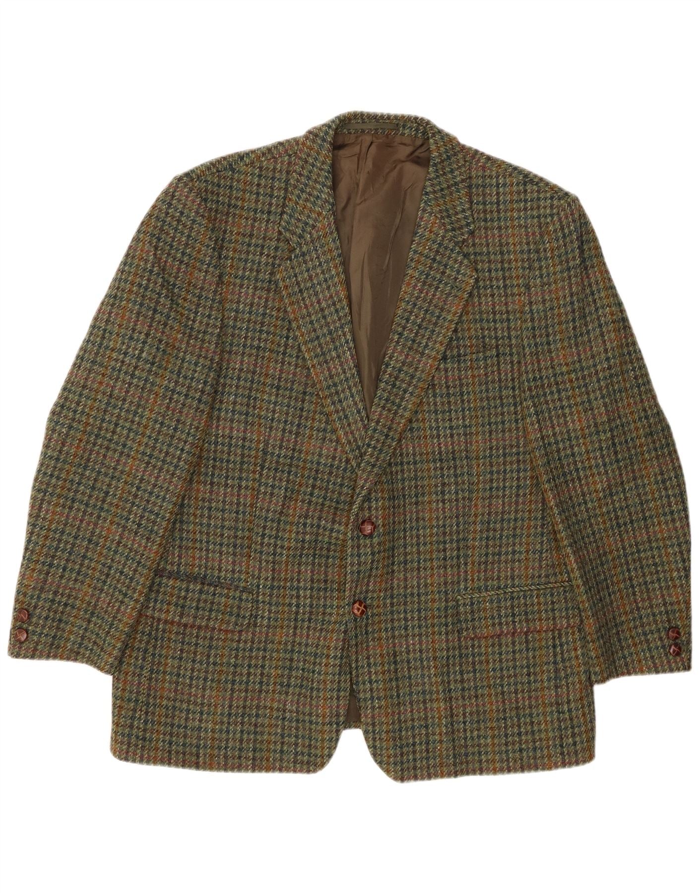 HARRIS TWEED Męska marynarka zapinana na 2 guziki UK 40, duża, khaki w pepitkę