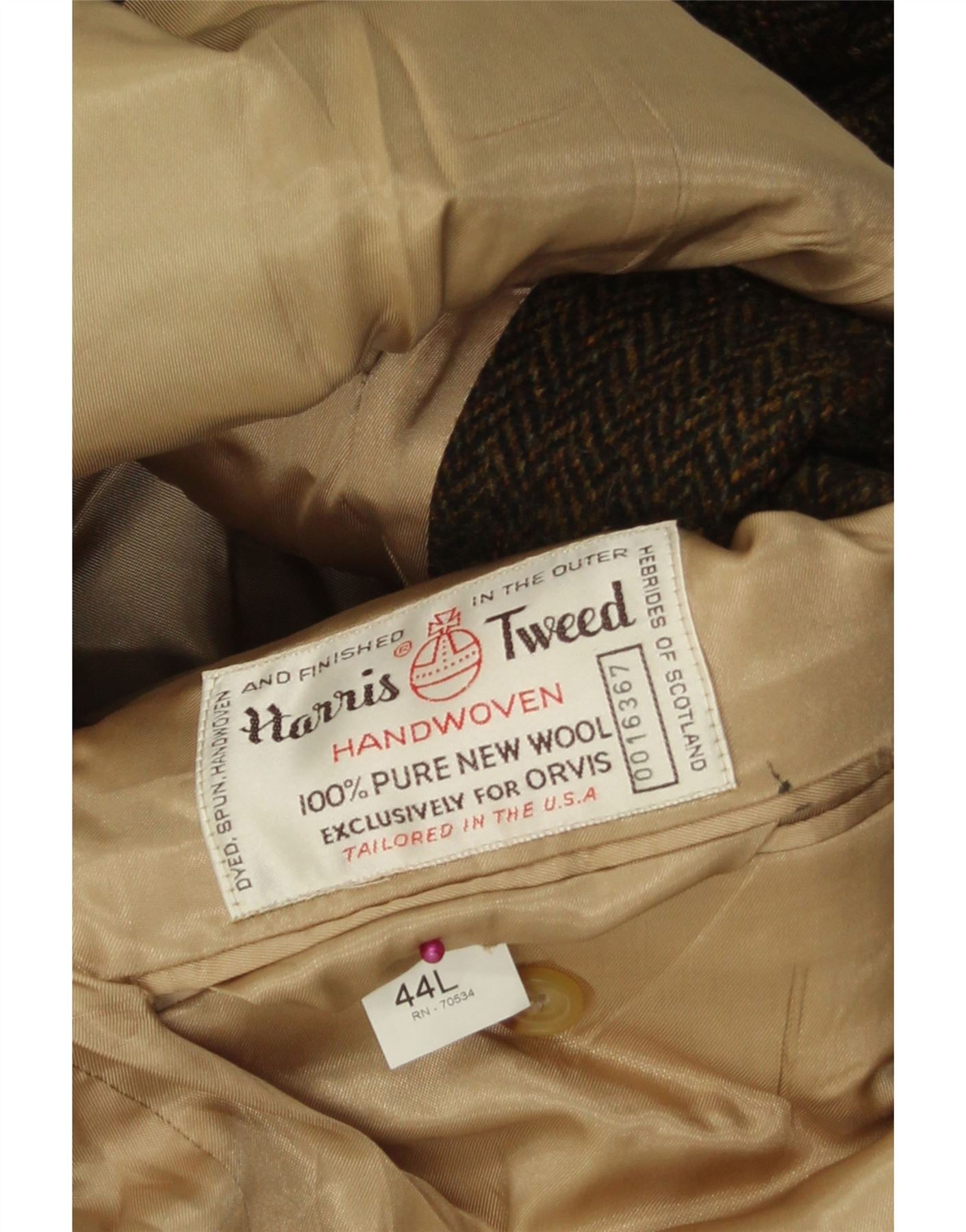 HARRIS TWEED Mens Long 3 Button Blazer Jacket UK 44 2XL Brown Herringbone