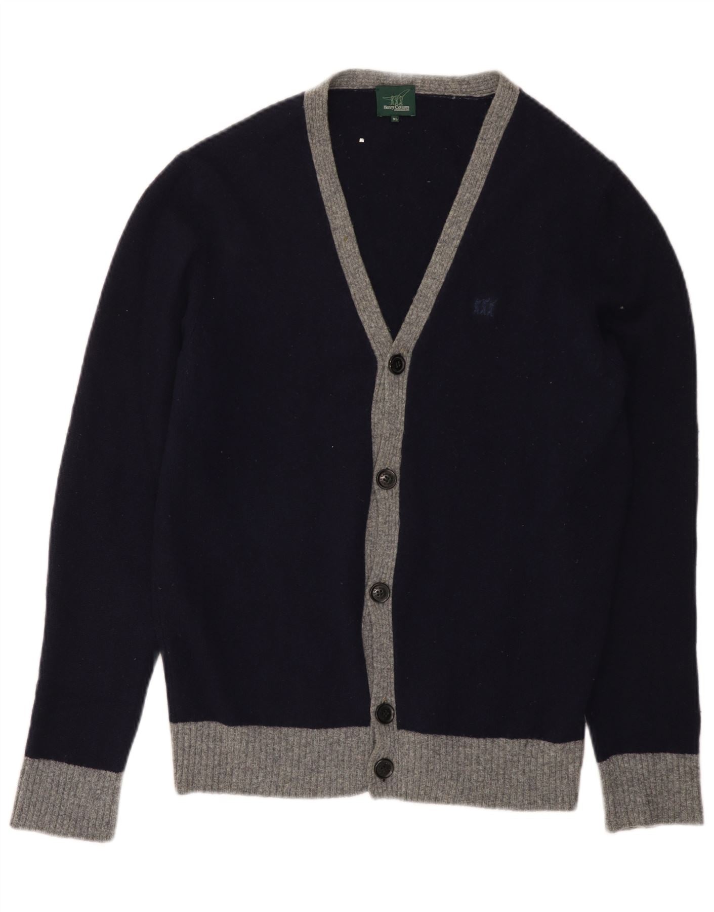 HENRY COTTONS Męski sweter rozpinany XL, granatowy, z blokami kolorów