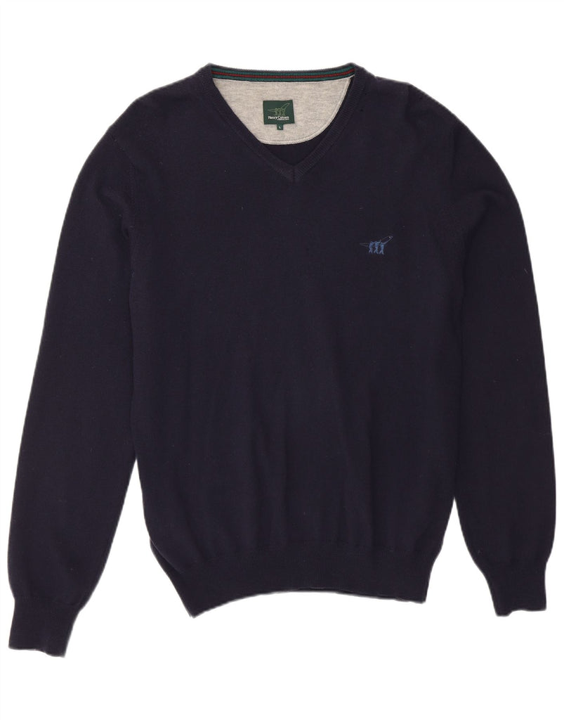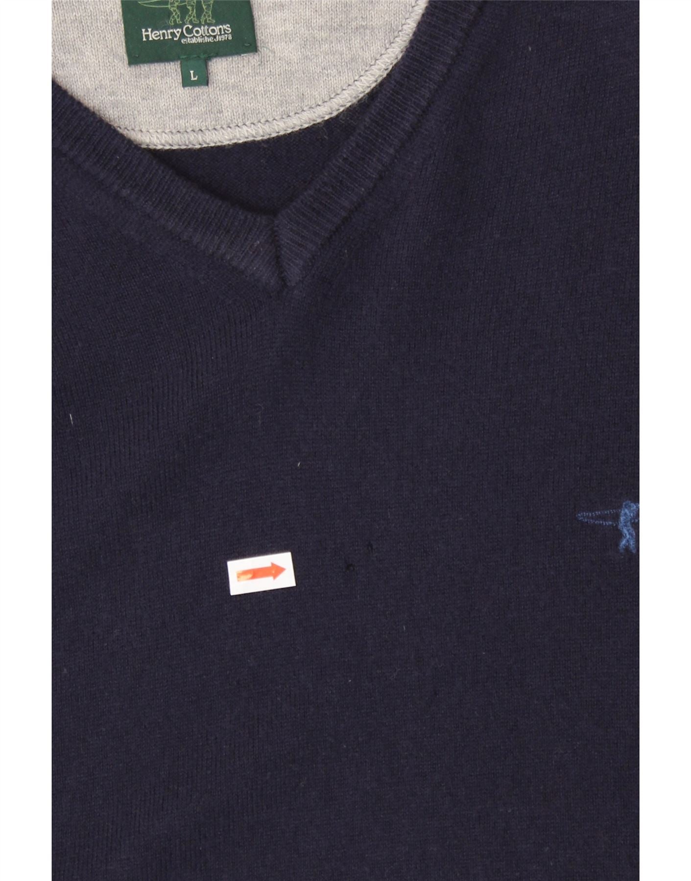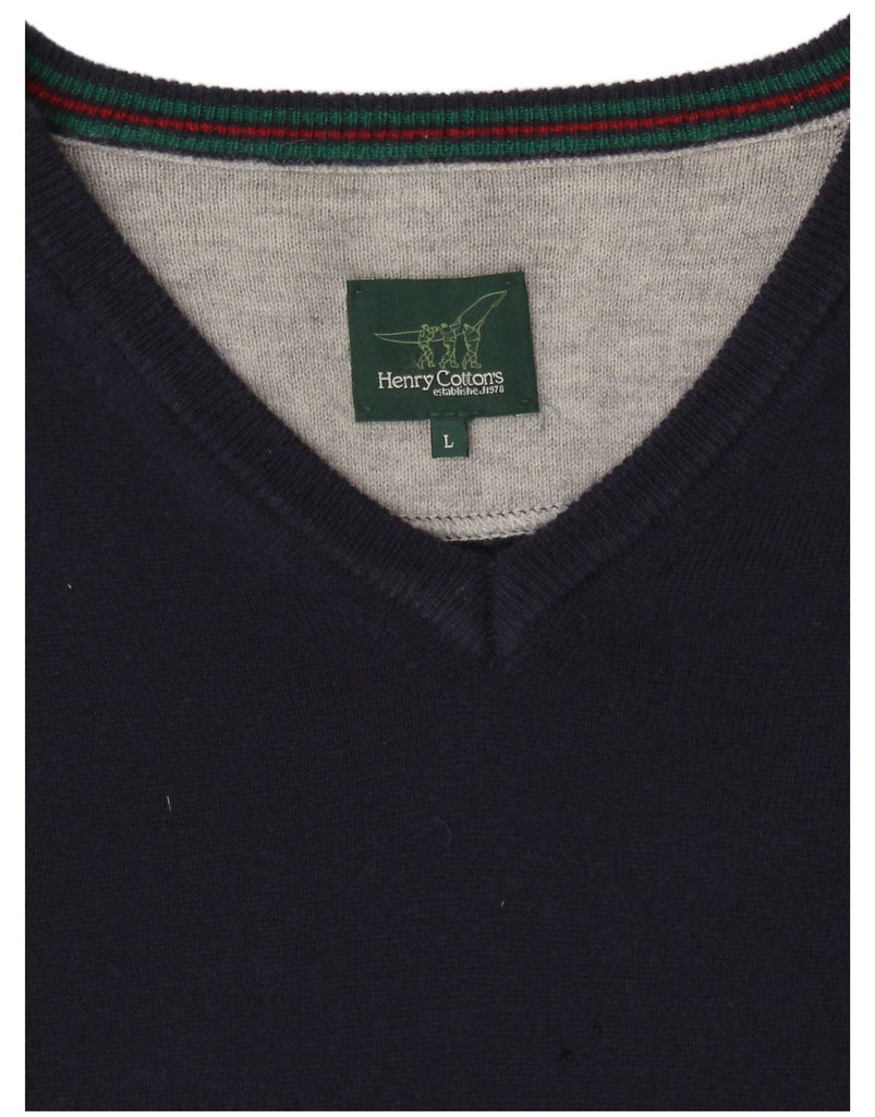 HENRY COTTONS Męski sweter z dekoltem w kształcie litery V, duży, granatowy