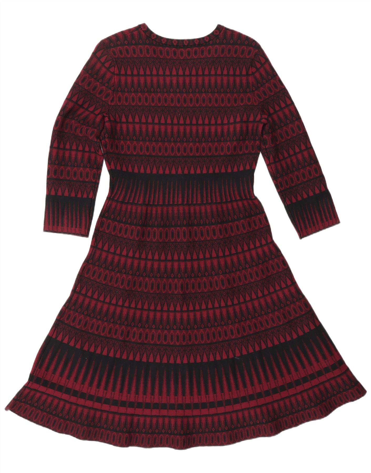 Damska sukienka sweterkowa z rękawem 3/4 HOBBS UK 10 Small, czerwona, geometryczna wiskoza